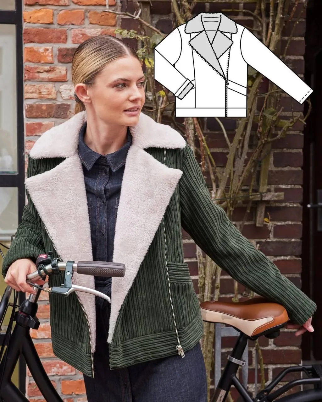 Байкерская куртка из вельвета и с плюшевым воротником