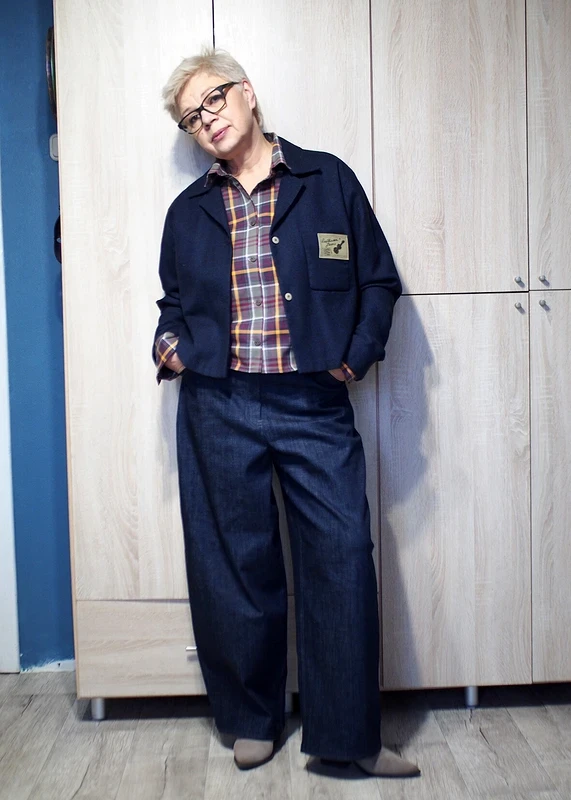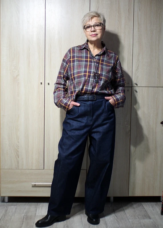 "Неожиданно в журнале зацепился взгляд за необычное слово "багги". И тут же мне захотелось попробовать сшить эти брюки, благо, ткани уже накоплено много, выбирай на вкус. Выбрала плотный тёмно-синий итальянский джинс с небольшим содержанием эластана. И не пожалела!