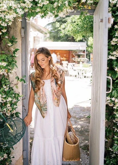 В сочетании строгого и милого есть особое очарование! В нашем жилете сливаются воедино строгость классики и прелестный круглый воротничок. Нашей героине такой микс очень к лицу, причем в разных ипостасях, ведь носить его можно как на голое тело, так и в комплекте с топами и блузками.