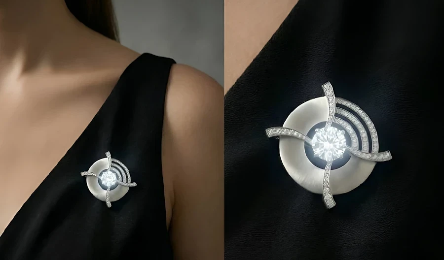 Петербургский ювелирный завод Grant выпустил брошь, совмещающую красоту и практичность в самом современном понимании: украшение оснащено встроенным вайфай роутером. Изделие выполнено из белого золота 585 пробы. В центре находится крупный природный бриллиант, а по кругу располагаются четыре золотые «антенны» с небольшими камнями. Брошь обеспечивает скорость передачи данных до 100 Мбит/с. Заряжается она от солнечного света, усиленного сиянием бриллиантов. Украшение совместимо с системами iOS и Android. На данный момент первый прототип проходит тестирование.
