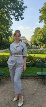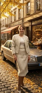 "Добрый день. Меня зовут Юлия Клименко (Шкурлетова). Родилась и проживаю в г. Воронеж. Год назад вдохновилась архивными журналами "Burda Moden" 80-90x, по которым раньше шила мама. Я давно чувствовала потребность в том, чтобы поменять свой гардероб. Хотелось бы поделиться частью своей коллекции. Все представленные фото обработаны с помощью ИИ под соответствующую эпоху, но изделия не потеряли своей индивидуальности в реальном виде.