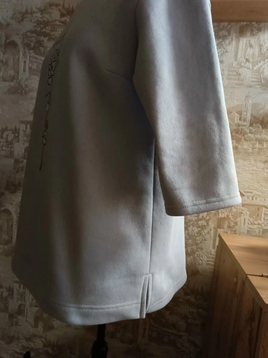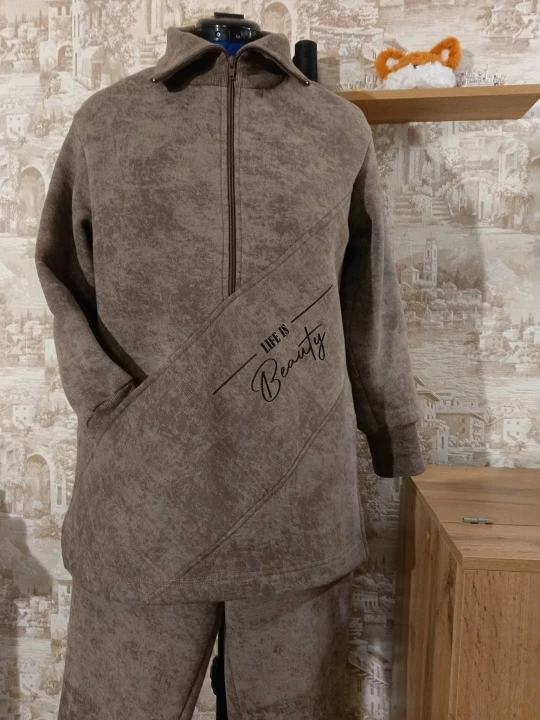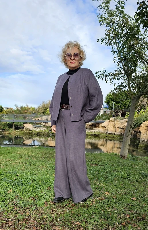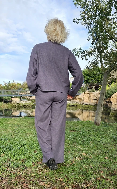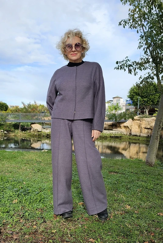 На костюм ушло 3 метра трикотажного полушерстяного полотна. Немного уменьшила длину брюк (мой рост 165 см).
