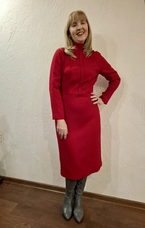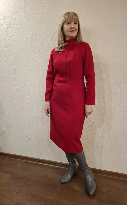 Показываю платье, которое я сшила из тонкой шерсти изумительно красивого красного цвета.