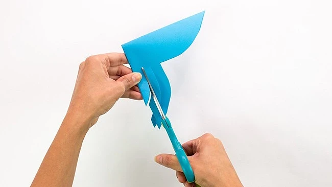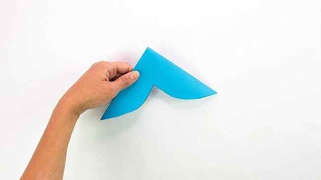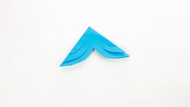 💙 С длинной стороны треугольника сделайте вырез плавной галочкой, как показано на фото. Следуя линиям выреза, сделайте по 2 надреза с каждой стороны. Разверните квадрат.
