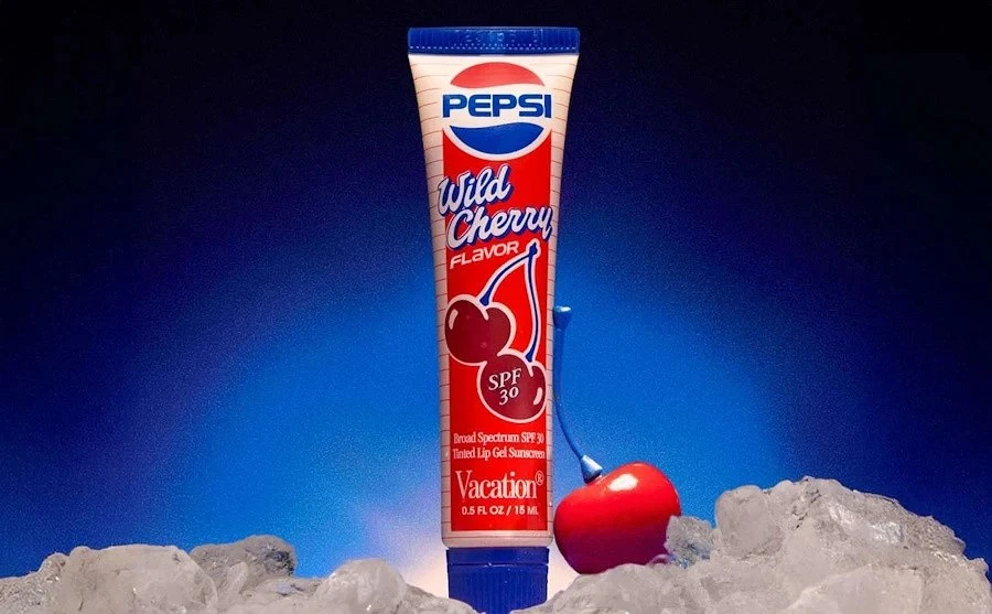 Теперь можно ощущать вкус вишневой Pepsi на губах постоянно, потому что компания выпустила бальзам для губ, вдохновленный соответствующим напитком. Сделано это было в коллаборации с маркой солнцезащитных средств Vacation. Упаковка для бальзама призвана навевать ностальгию. Графика и логотип на этикетке отсылают к 1980-м, а закрывается тюбик такой же пластиковой крышечкой, как и бутылка, только в миниатюре. Содержимое при этом отвечает запросам настоящего момента: формула обогащена разглаживающими и смягчающими пептидами, имеет SPF 30, обладает полупрозрачным оттенком и водостойкостью. Производители настаивают, что бальзам придает губам эффект «только что отпитой газировки».