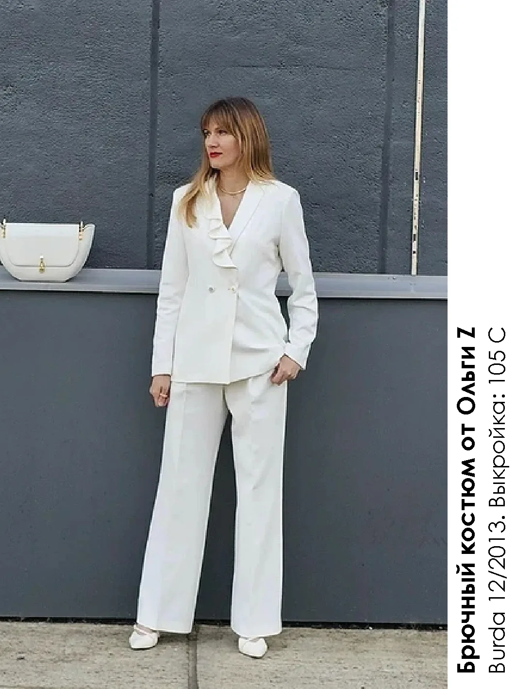 Дизайнерская вещь по выкройке Burda? Легко! По крайней мере, для Ольги, чьи брючные костюмы уже давно вскружили голову всему Фотофоруму! В ее руках вполне традиционный жакет с шалевым воротником превратился в изысканный двубортный жакет с воланом, придающим всему комплекту уникальное звучание.