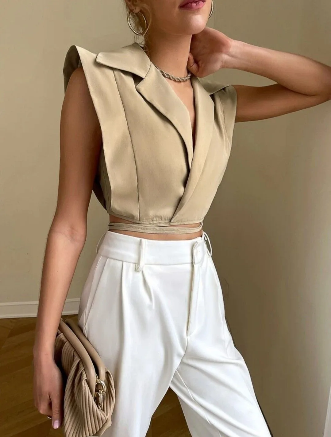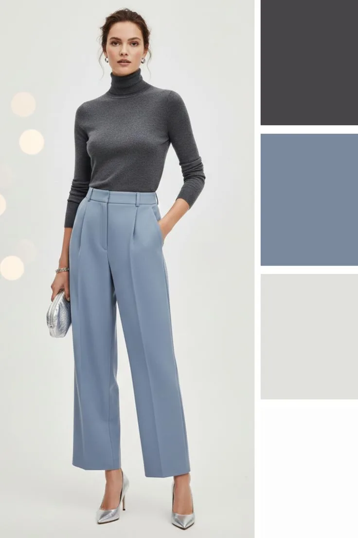 👉Приталенный жакет с V-образным вырезом и застежкой на кнопки станет идеальным партнером для брюк слева. Подплечники и узкие рукава подчеркивают чистоту линий, а тонкий ремень акцентирует талию. Перед вами универсальная классика, которая хорошо впишется и в деловой стиль.