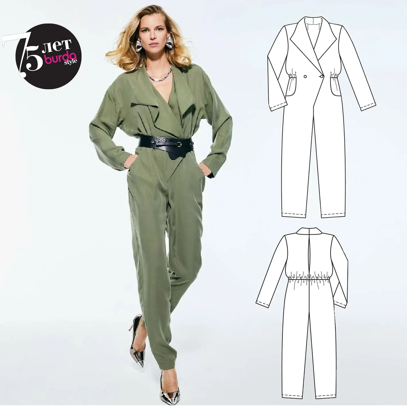 👉 Может ли комбинезон быть элегантным? Безусловно, да еще каким! Это успешно доказывает наша модель с глубоким вырезом, плавными линиями «лацканов» и мягким акцентом на талии.