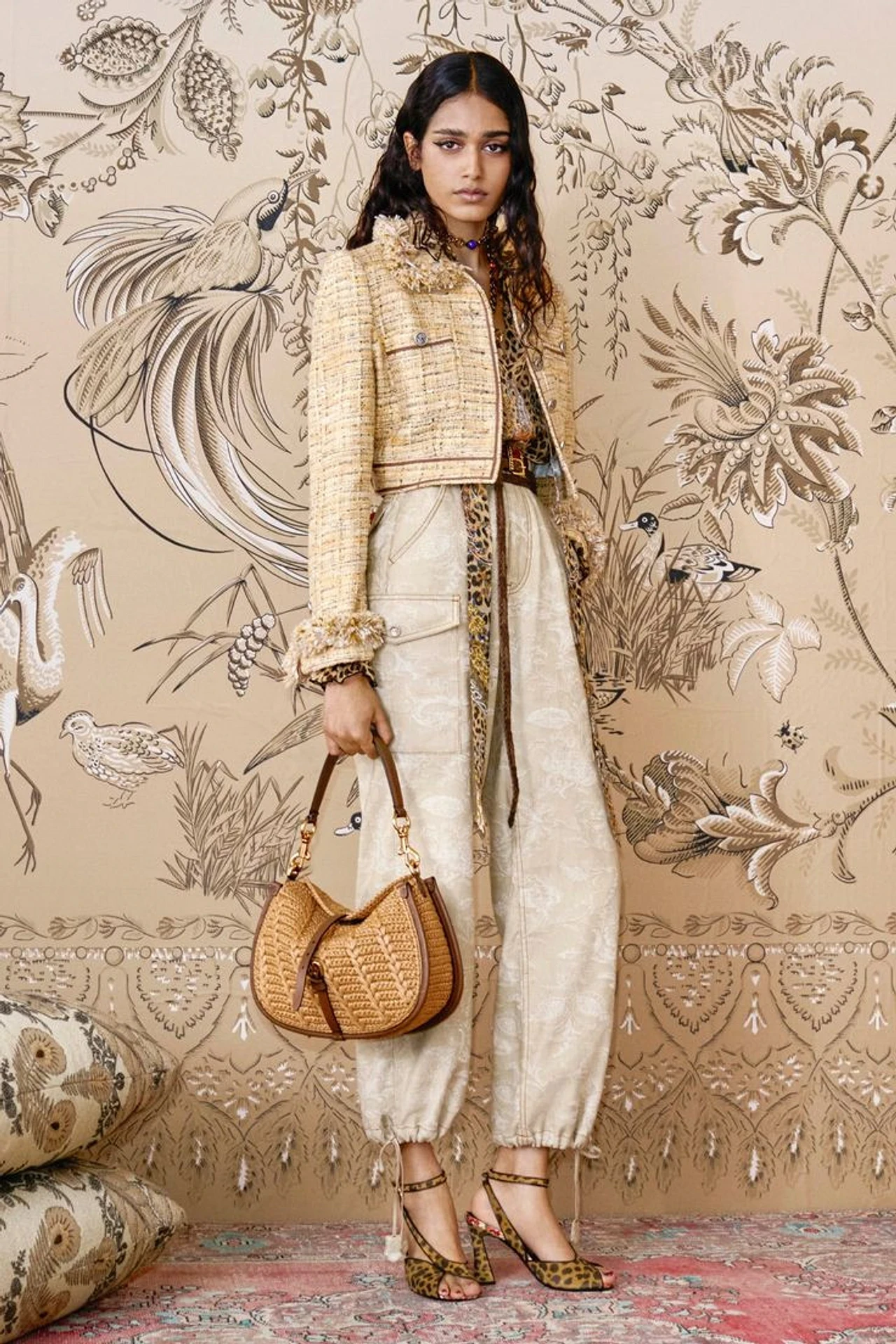 Креативный директор Etro Марко-де Винченцо сделал круизную коллекцию 2026 беззастенчиво яркой, пестрой и жизнерадостной. Из запасов модного дома он извлек принты, каждый из которых обладал акцентным характером сам по себе, и свел их вместе. На декор вроде рюшей, вышивки, крупных воланов и бахромы он тоже не поскупился. В общем, для приверженцев минимализма эта линейка — культурный шок, а для поклонников эклектики и позитива — настоящая сокровищница, в которой интересно покопаться и извлечь пару-тройку идей для себя.