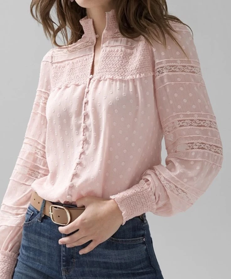 Сшить модную блузку можно с помощью нашей базовой выкройки блузки с воротником-стойкой, внеся в нее необходимые изменения. А дополнить модель кружевными ставками поможет наш мастер-класс