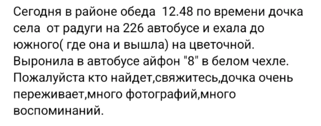 Если вы его нашли пожалуйста позвоните по номеру +7 900 101 7995