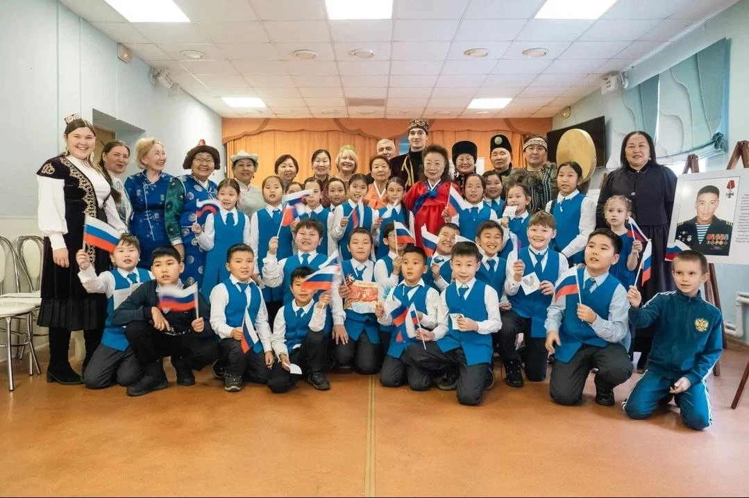 📍 В актовом зале была представлена фотогалерея «Защитники Отечества: Славные сыны Народов Бурятии». Для участников квеста прозвучало стихотворение «С чего начинается Родина», также они посмотрели мотивационный видеоролик из проекта «Забайкальский форпост России» Ассамблеи «Три танкиста» на языках народов республики. После этого в зале воцарилась минута молчания – дань памяти всем, кто отдал жизнь за Родину.