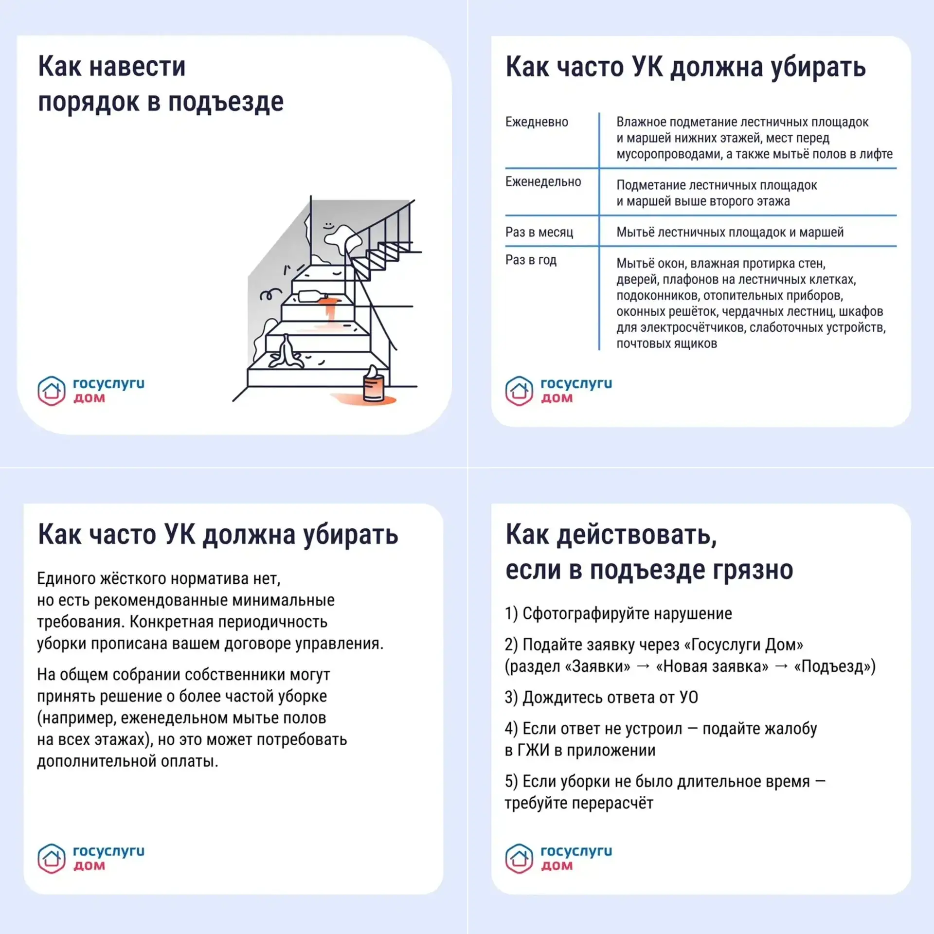 💫 Рассказываем, какие рекомендации по уборке существуют и как повлиять на управляющую организацию через приложение «Госуслуги Дом».