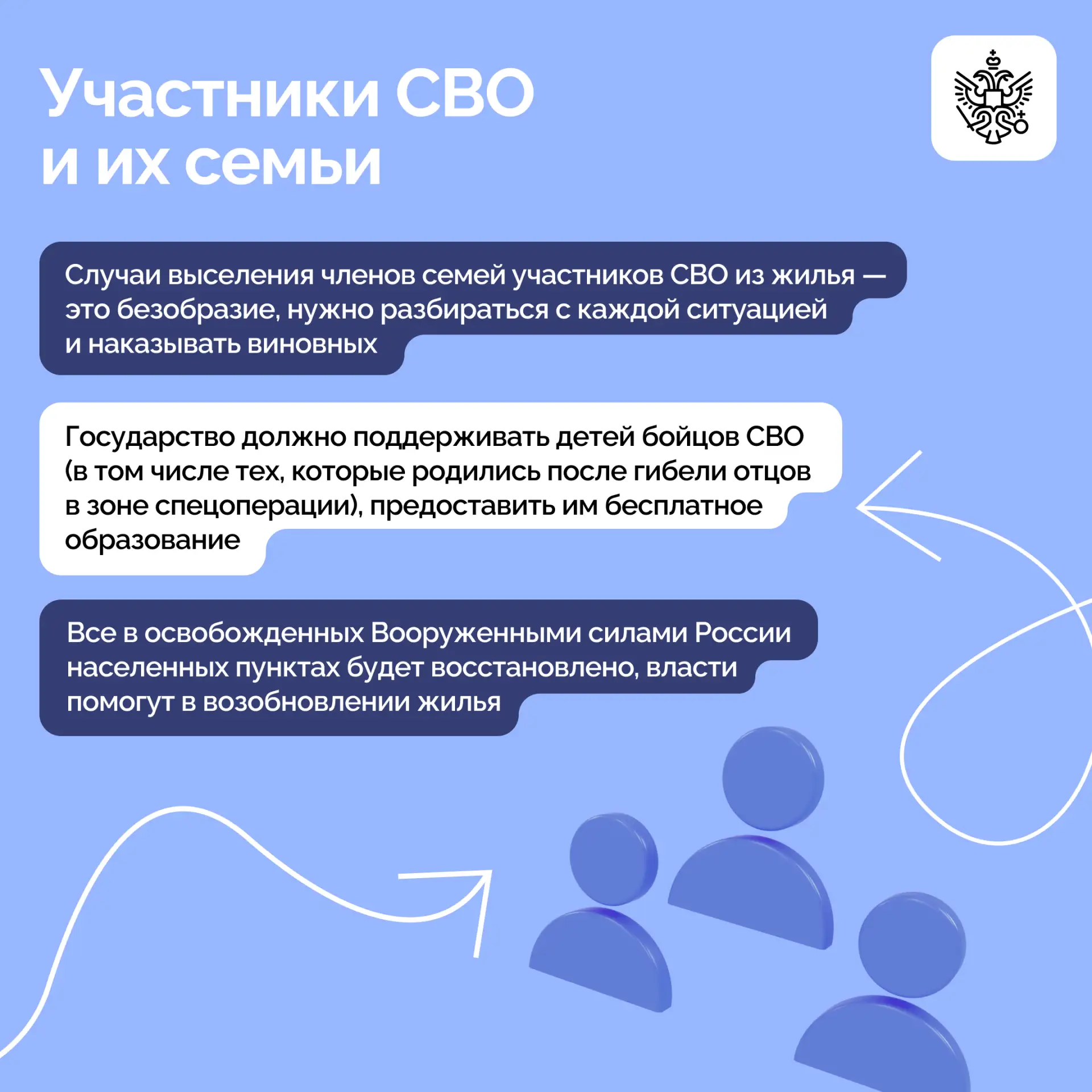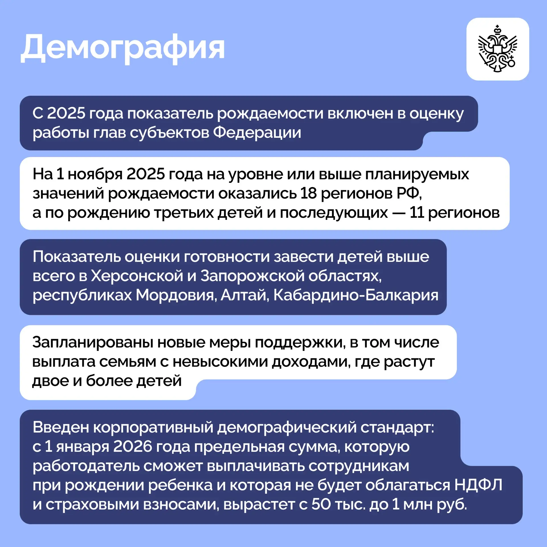 💬 «Все национальные проекты должны прямо или опосредованно влиять на решение проблем демографического развития, быть нацелены на создание новых возможностей для людей всех поколений, на повышение благополучия семей с детьми», — подчеркнул Президент.