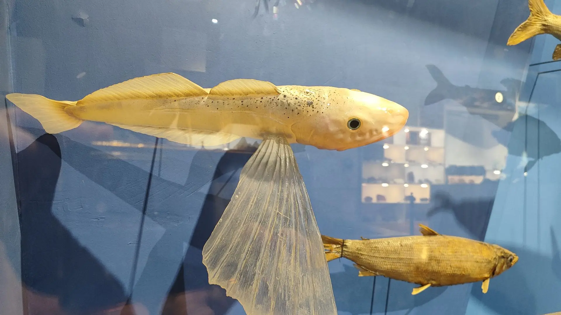 На фото: макет большой голомянки в масштабе 3:1, малая и большая голомянки в Музее природы Бурятии.