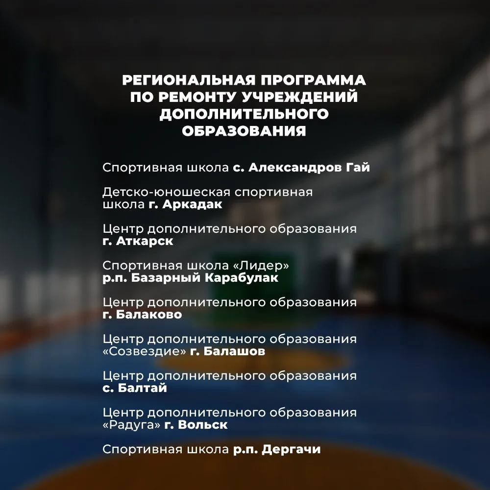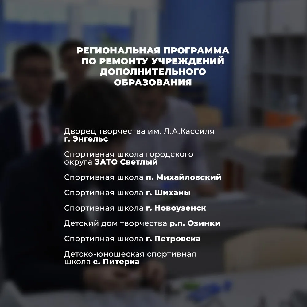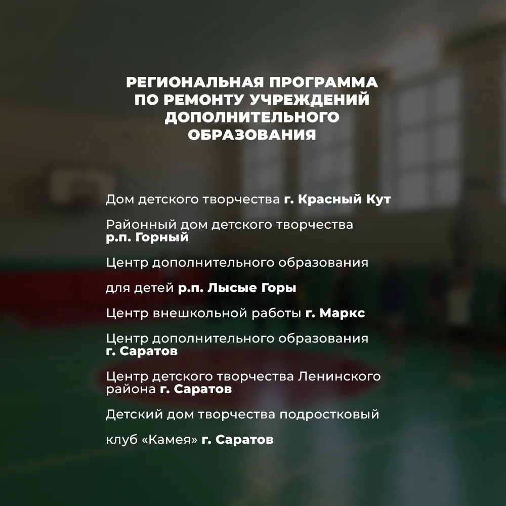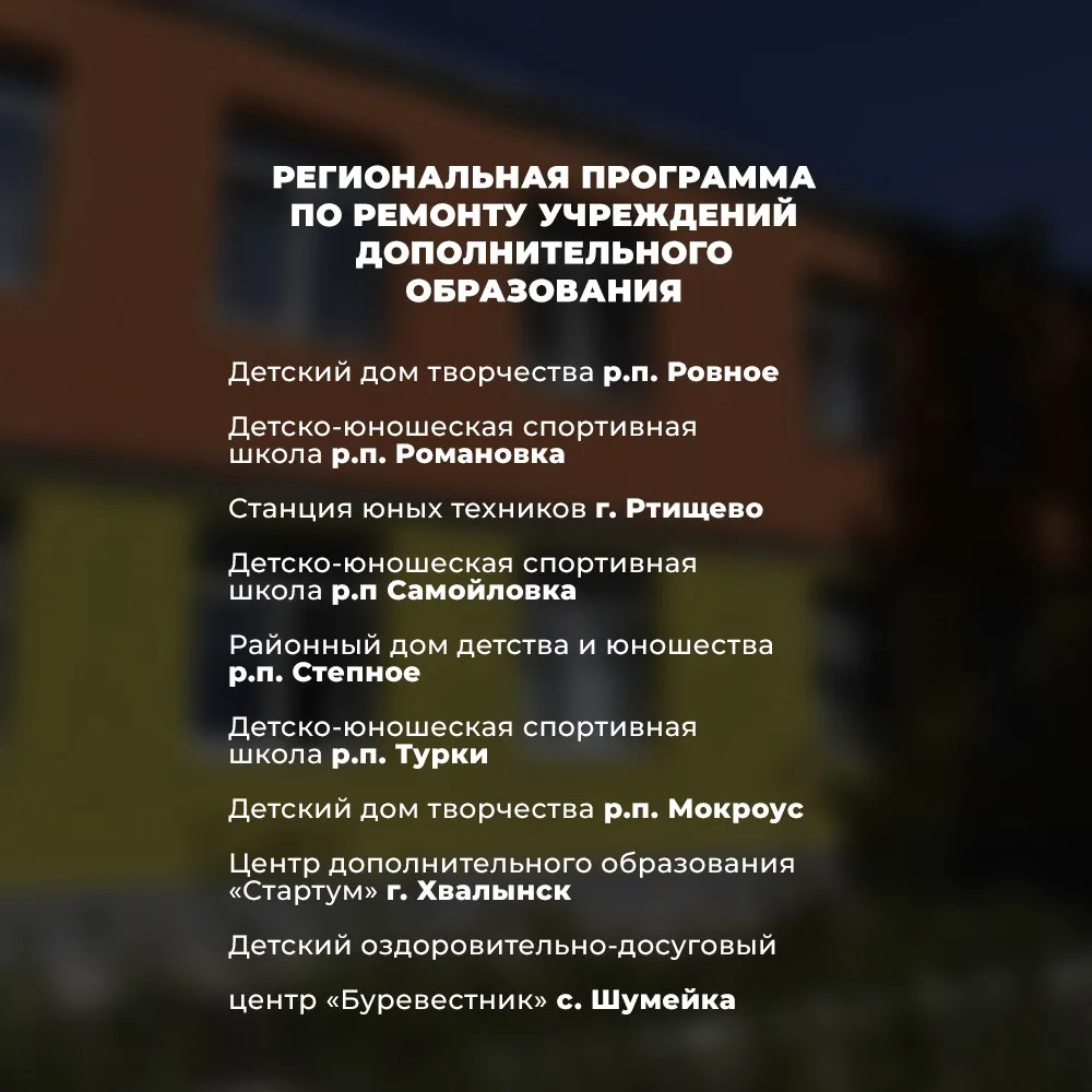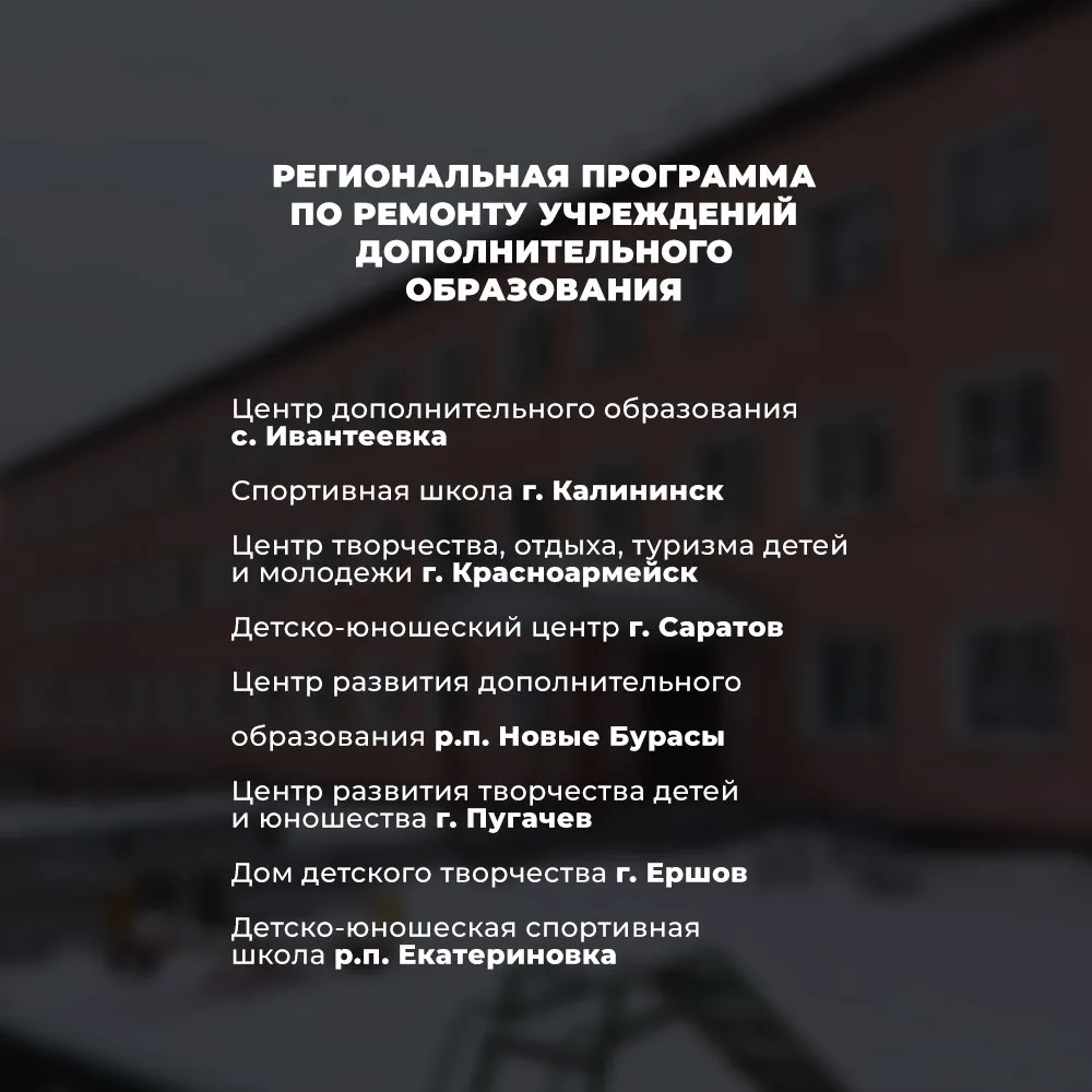 📌 Список учреждений дополнительного образования, которые в 2026 году будут отремонтированы в рамках региональной программы развития.