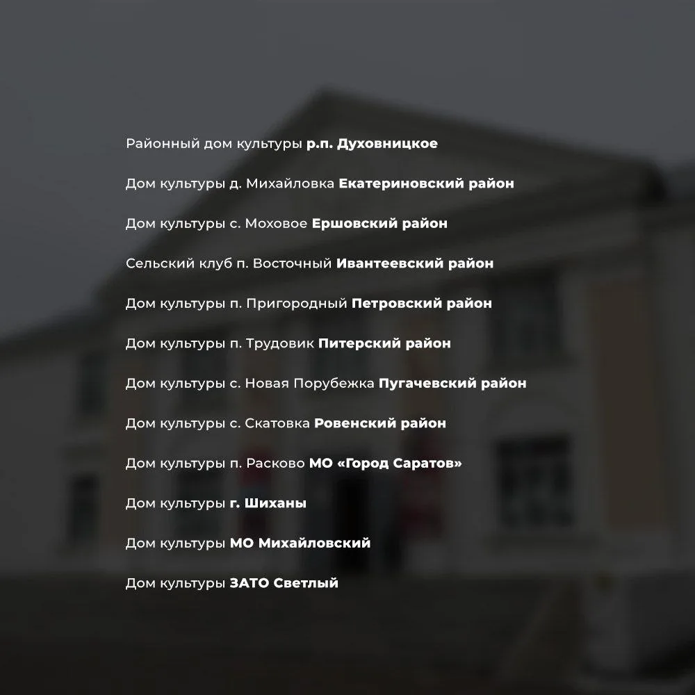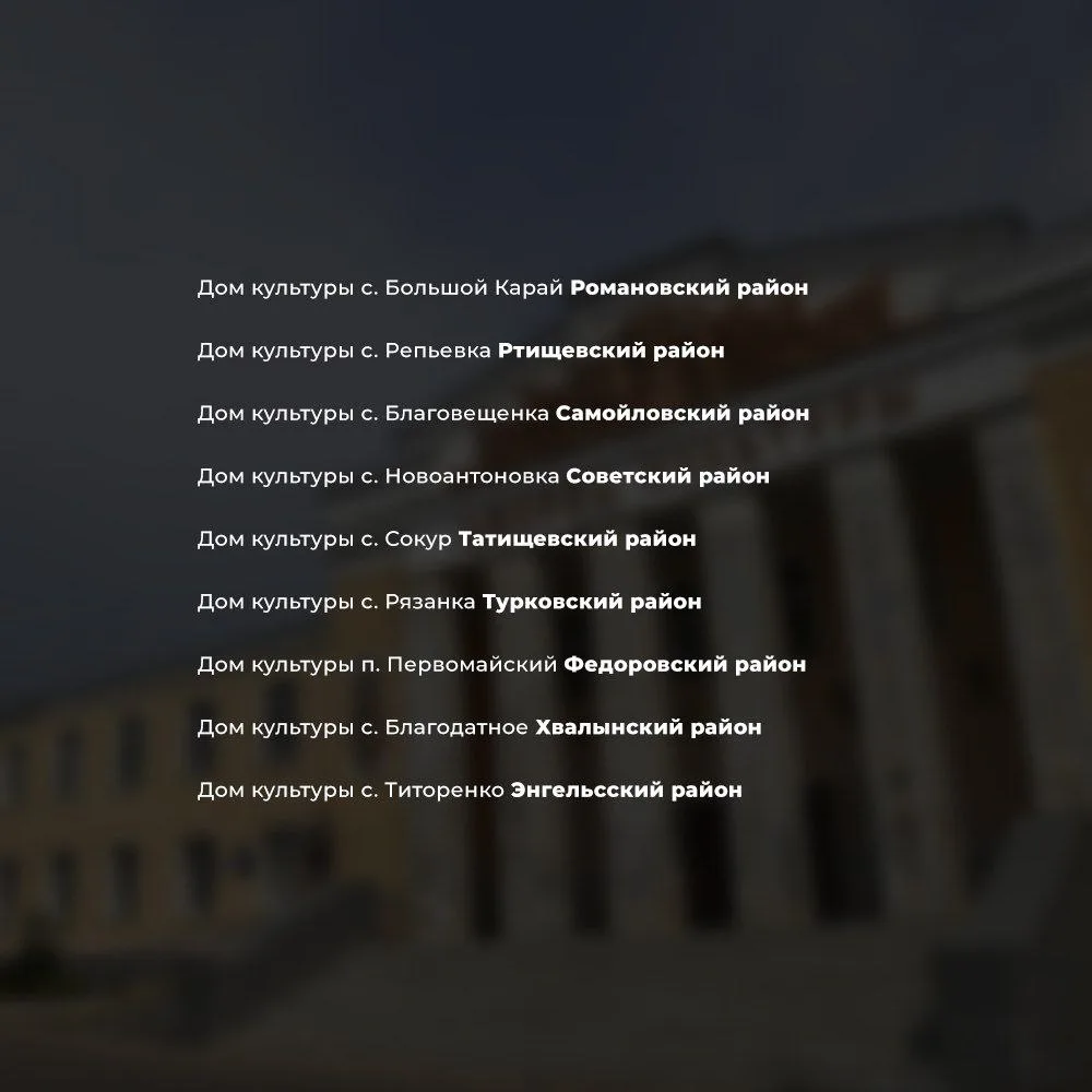 В этом году продолжим на территории Саратовской области ремонт домов культуры в селах.