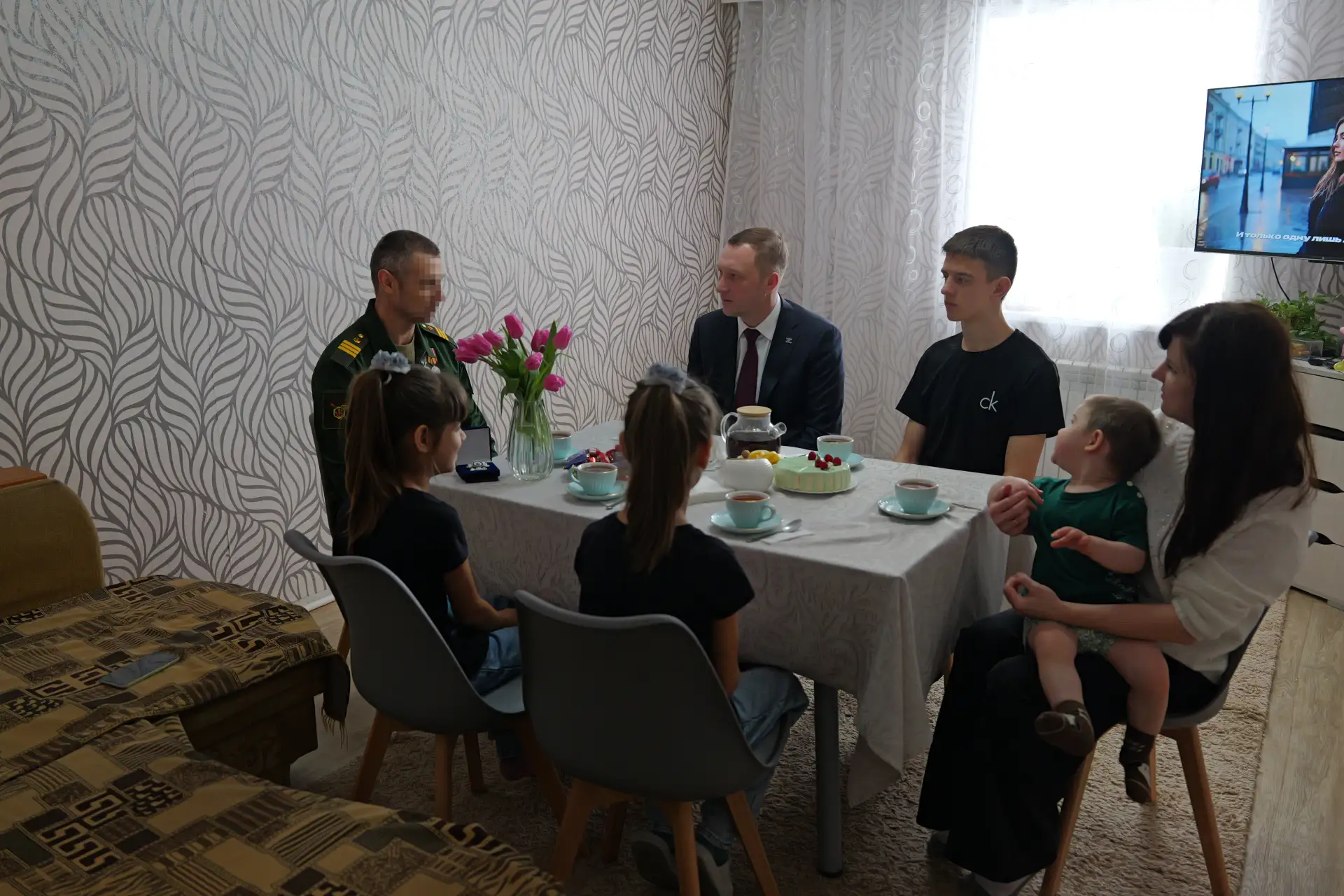 🎖 В Пугачеве познакомился с участником СВО гвардии сержантом Сергеем Р. и его большой и дружной семьей. Пока военнослужащий находится в отпуске, навестил его, чтобы вручить почетный знак Губернатора Саратовской области «За мужество и отвагу».