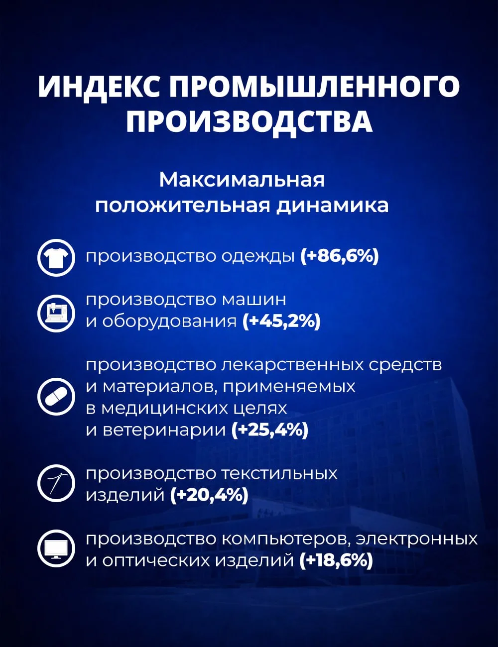 💊 производство лекарственных средств и материалов, применяемых в медицинских целях и ветеринарии (+25,4%);