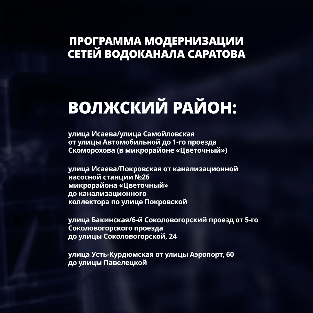 ➡️ Определены участки, которые вошли во второй этап масштабной программы модернизации сетей водоканала Саратова.