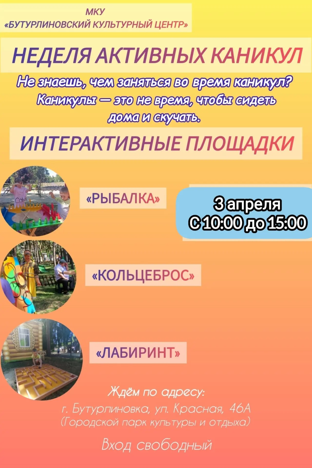3 апреля (с 10:00 до 15:00) на территории городского парка культуры и отдыха будут доступны ИНТЕРАКТИВНЫЕ СТАНЦИИ💥