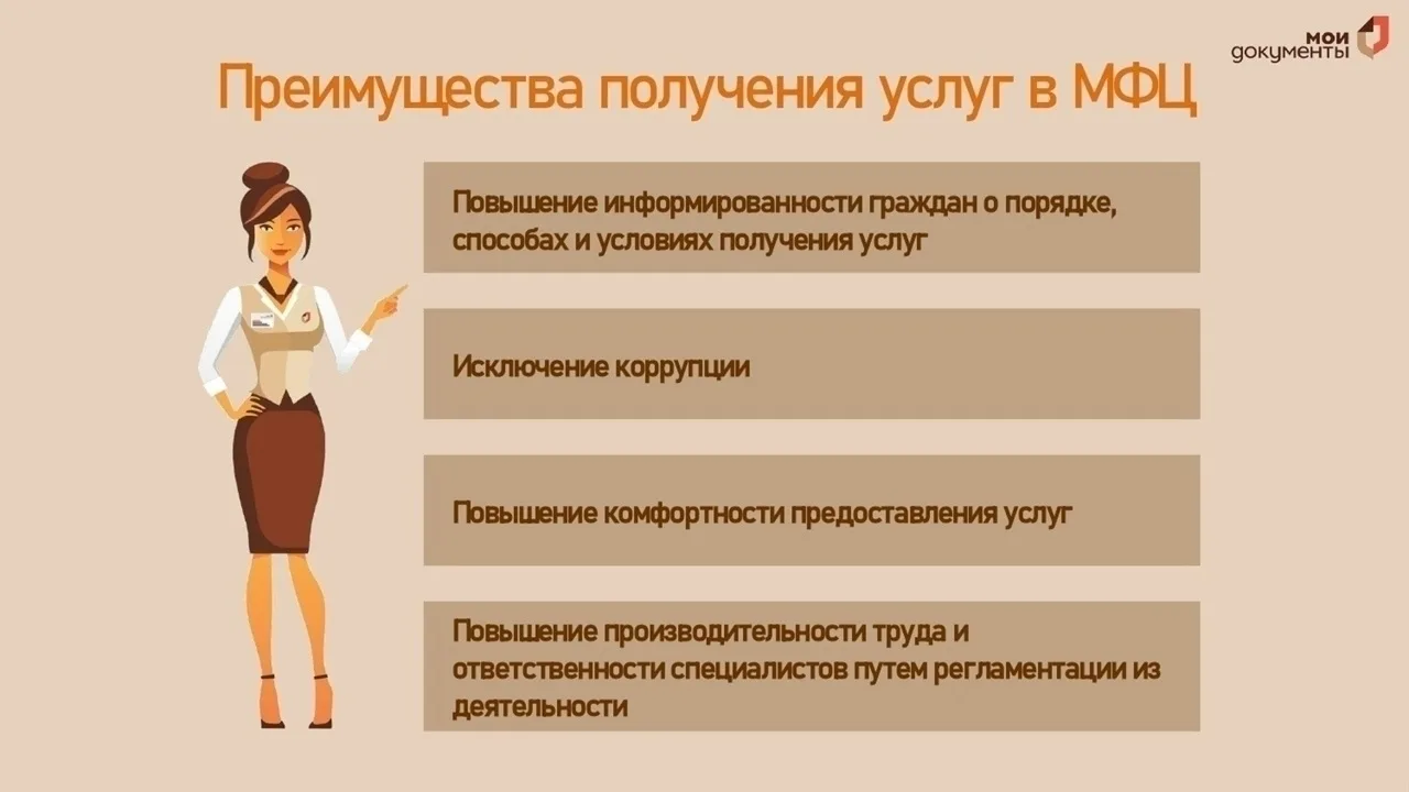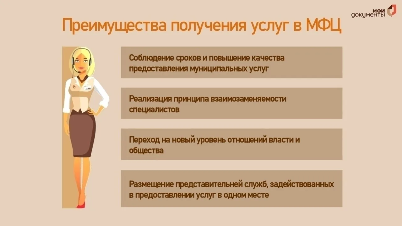 Почему в МФЦ? 🏛 Центры «Мои Документы» значительно упрощают получение государственных и муниципальных услуг для граждан. Обратившись за услугами в МФЦ, можно использовать ряд преимуществ: