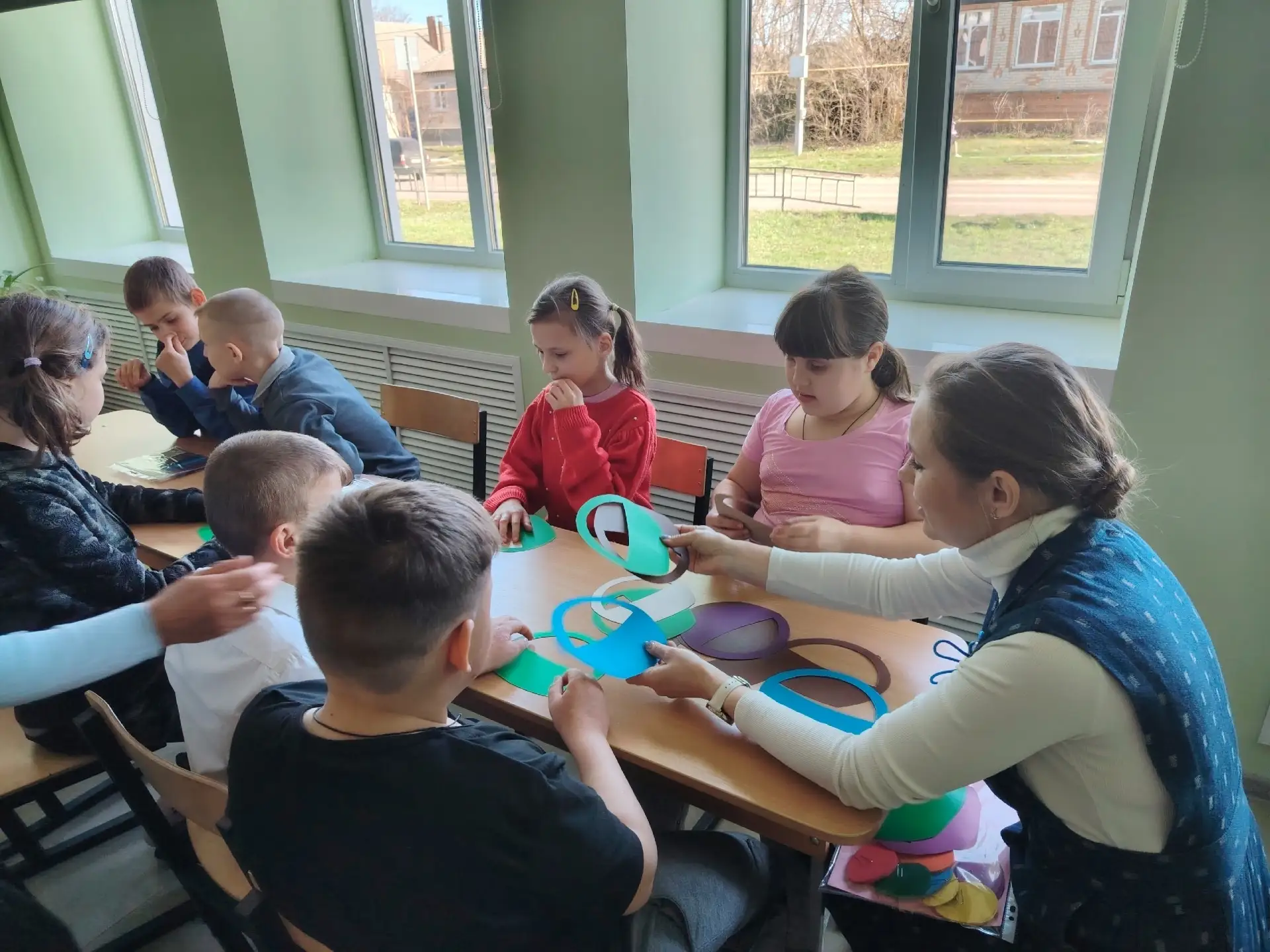 10 девченок и мальчишек из Бутурлиновской школы 9 объединились в команды и сразились в весёлой эстафете.
