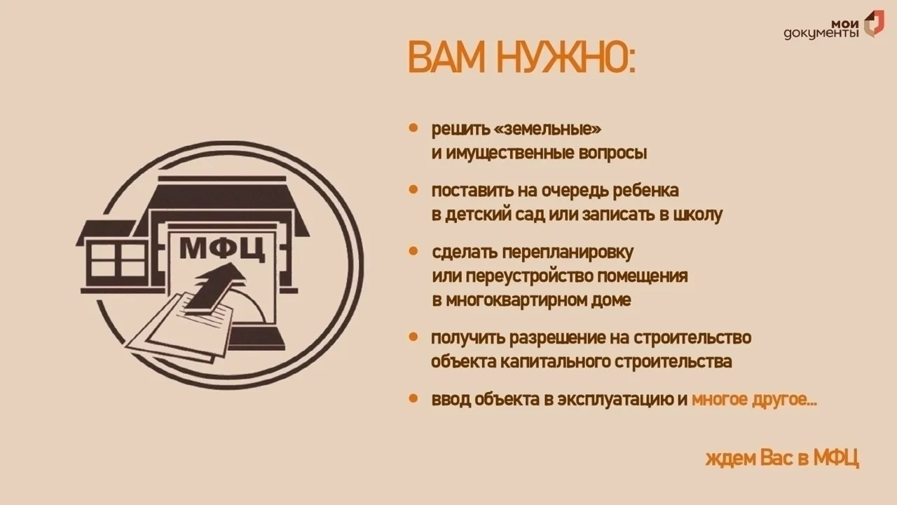 📍получить разрешение на строительство объекта капитального строительства или на ввод объекта в эксплуатацию и многое другое, то ждем Вас в МФЦ!