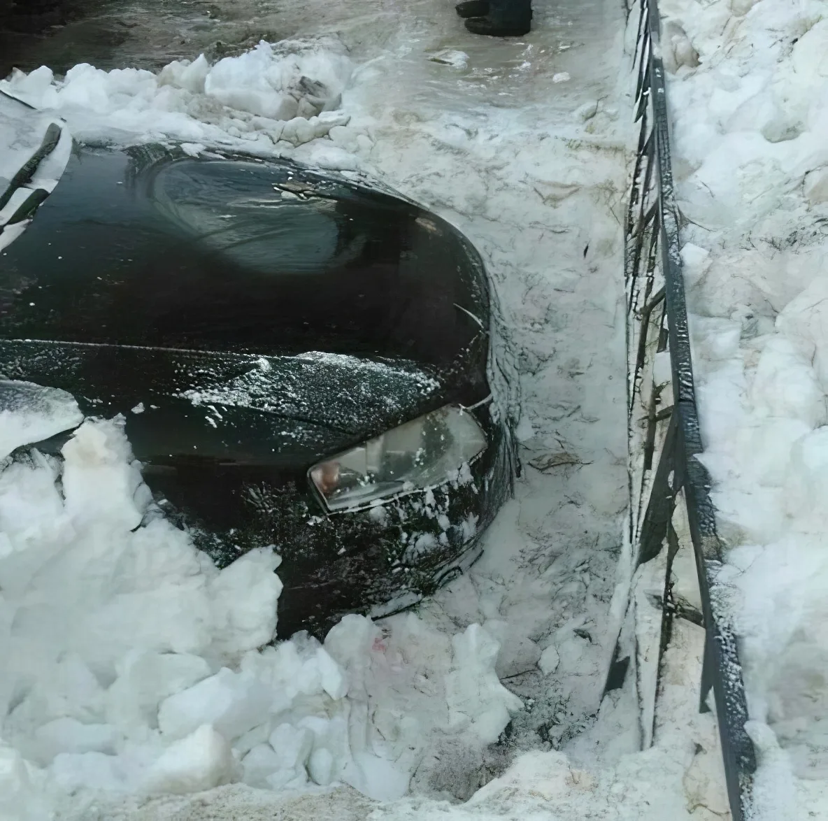 Соседи уверяют: «Мы её не трогали». Снег, в свою очередь, заявляет: «Я тоже не виноват», — будто сам не он этот сугроб вырос. А ограждение вообще ведёт себя так, будто оно тут всегда было, как старший по парковке, который уже присвоил себе право на этот участок.