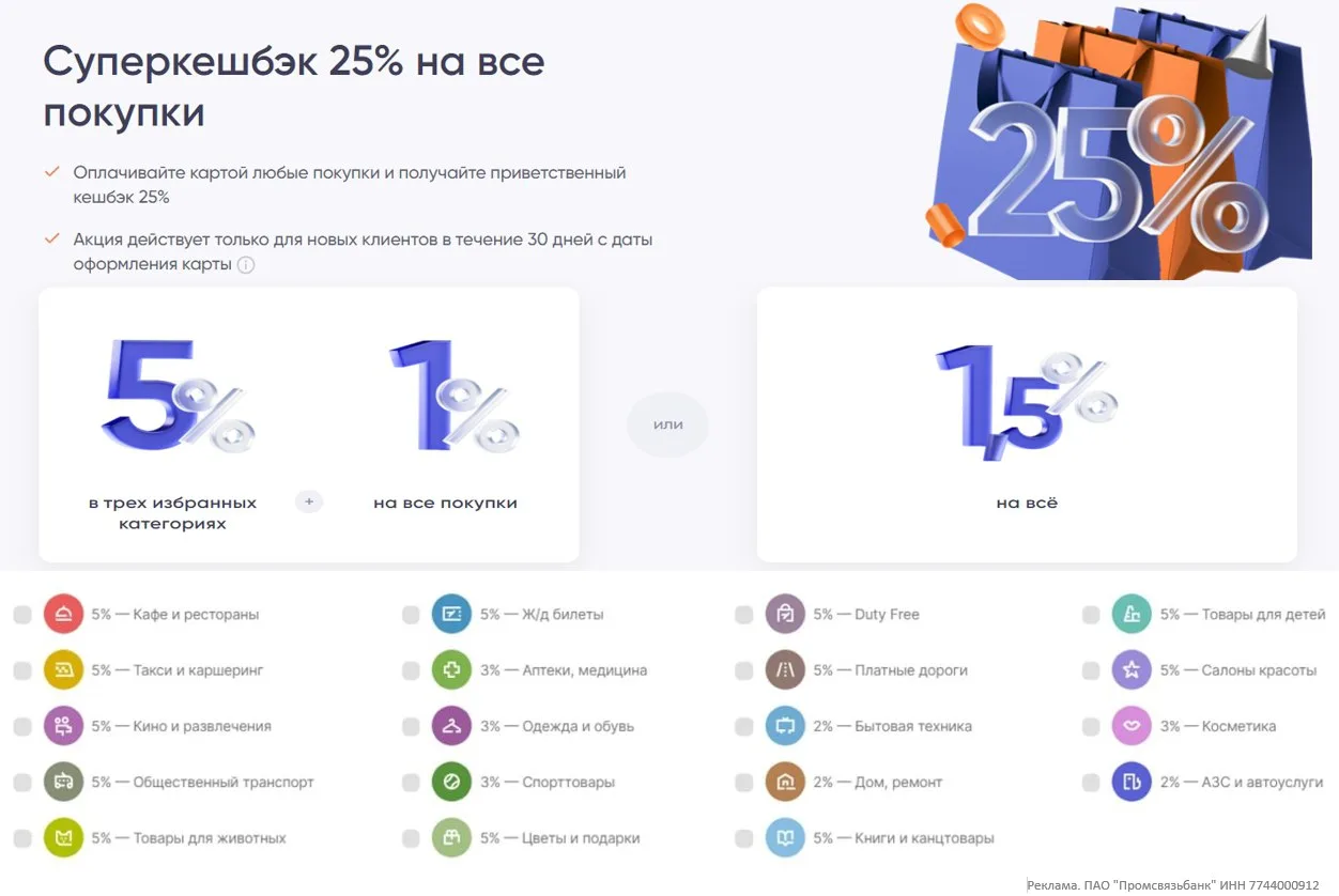 ➡️ 2-5% в 3-х категориях + 1% на всё.