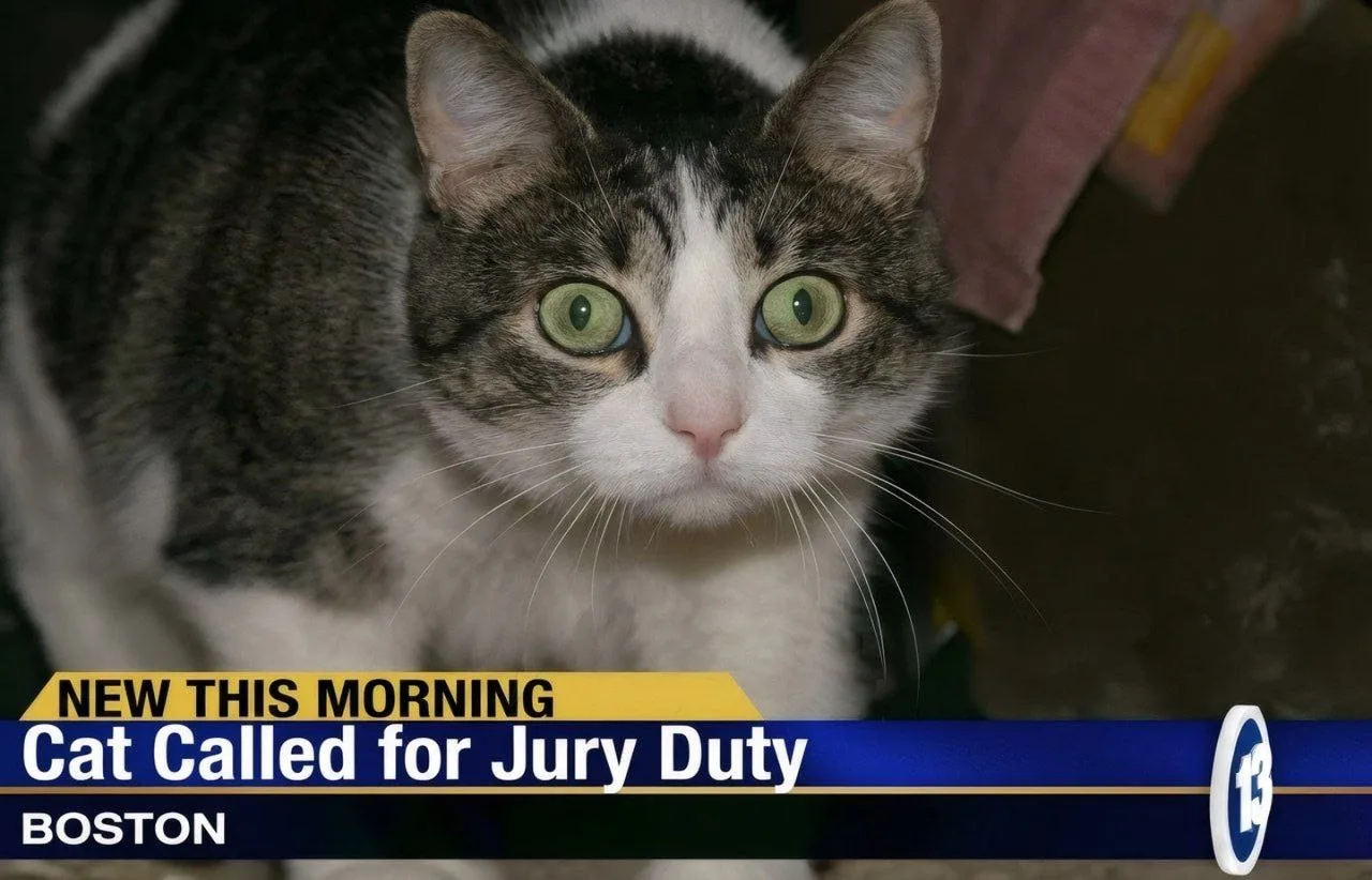 Женщина написала в суд, что кот не может быть присяжным, так как он даже не говорит по-английски, но ей ответили, что это не является основанием для освобождения, и обязали кота явиться в суд.