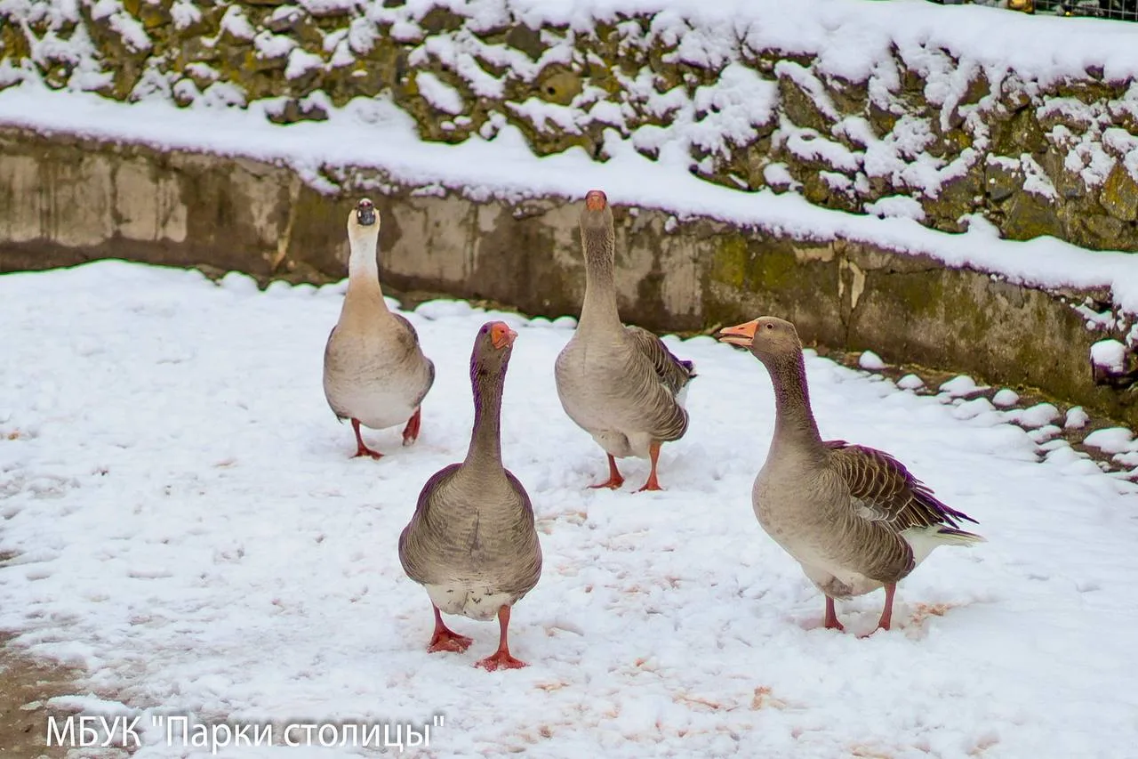Обитатели Симферопольского зооуголка любят зиму! Леопард Маркиза предпочитает чистить шубку в снежном покрывале, лев Ромео – любоваться собственными отпечатками королевских лап. Игривое настроение и у птиц – они с любопытством копаются в снегу и устраивают веселые перебежки.