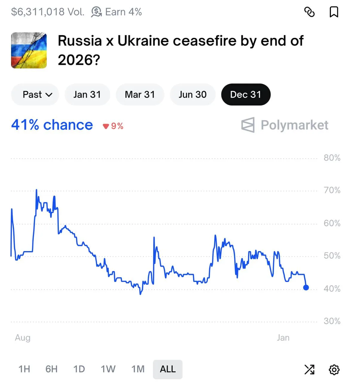 Ожидания окончания конфликта на Украине ослабевают — данные Polymarket