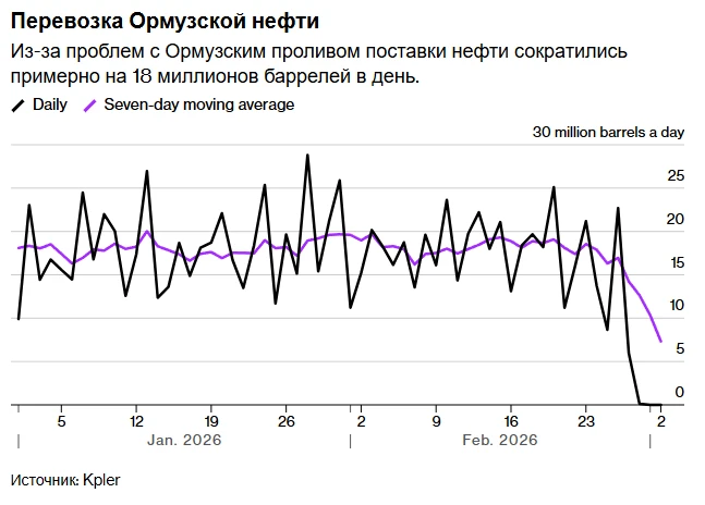 Чем дольше будут продолжаться перебои в поставках через Ормузский пролив, тем ближе будет энергетический кризис. Трейдеры предупреждают, что если перебои продлятся больше нескольких дней, это может привести к хаосу на рынках, нарушить цепочки поставок и спровоцировать рост инфляции.