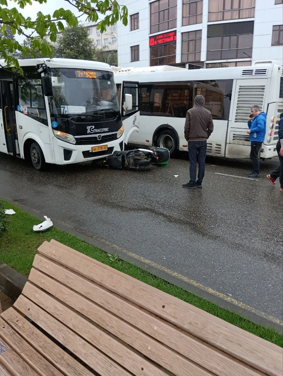 Город Сочи, дождь. Курьер попал в аварию. Условия агрегаторов провоцируют на нарушенияя ПДД. Ведь чем больше заказов сделает тем больше доход.