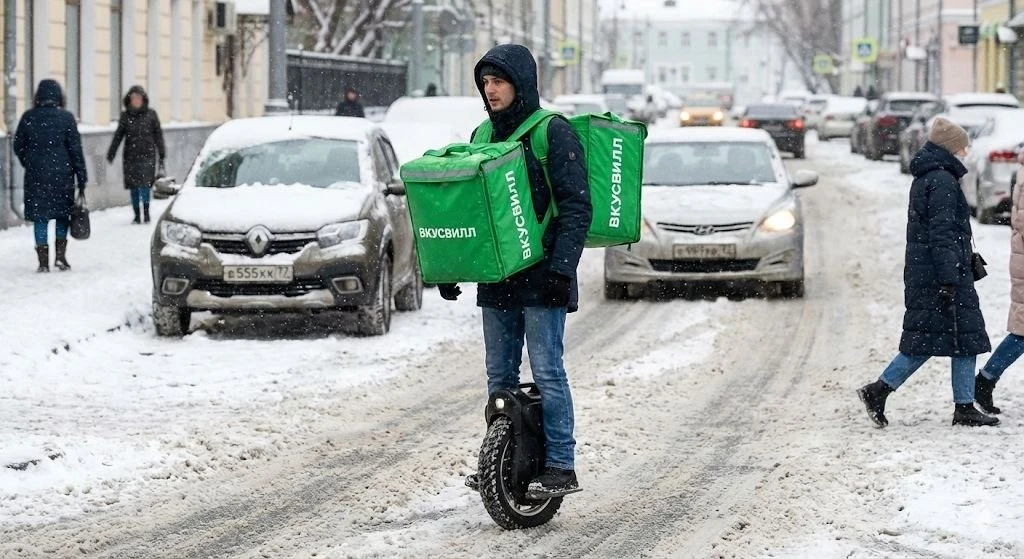 В Москве из-за непогоды запустили доставку на тракторах — курьеры развозят продукты и заодно помогают расчистить снег.