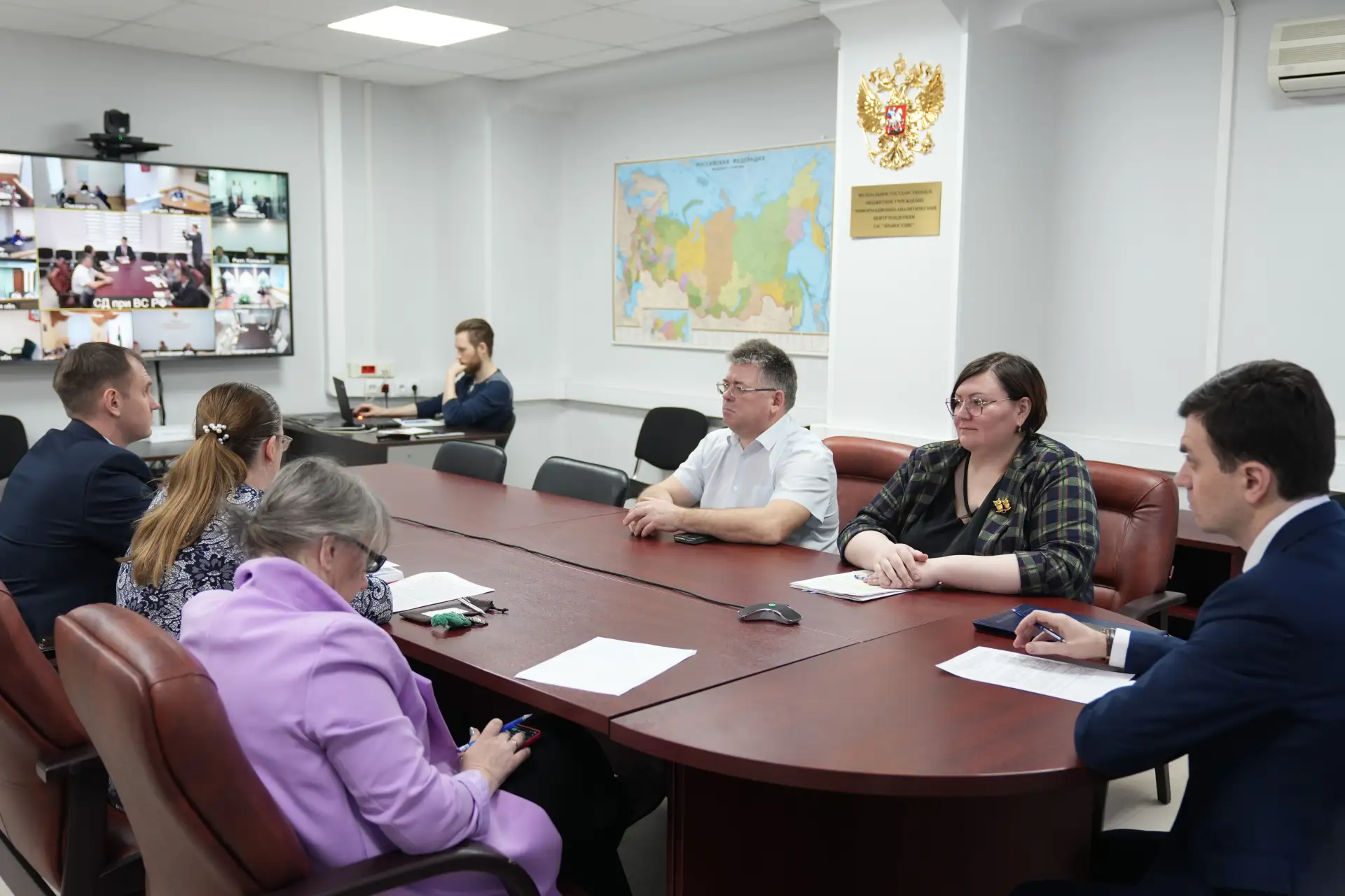 Совещание прошло под председательством заместителя Генерального директора Судебного департамента Сергея Бессчасного с участием начальника Управления информатизации Ольги Серой и исполняющего обязанности руководителя ФГБУ ИАЦ Судебного департамента Романа Ершова.