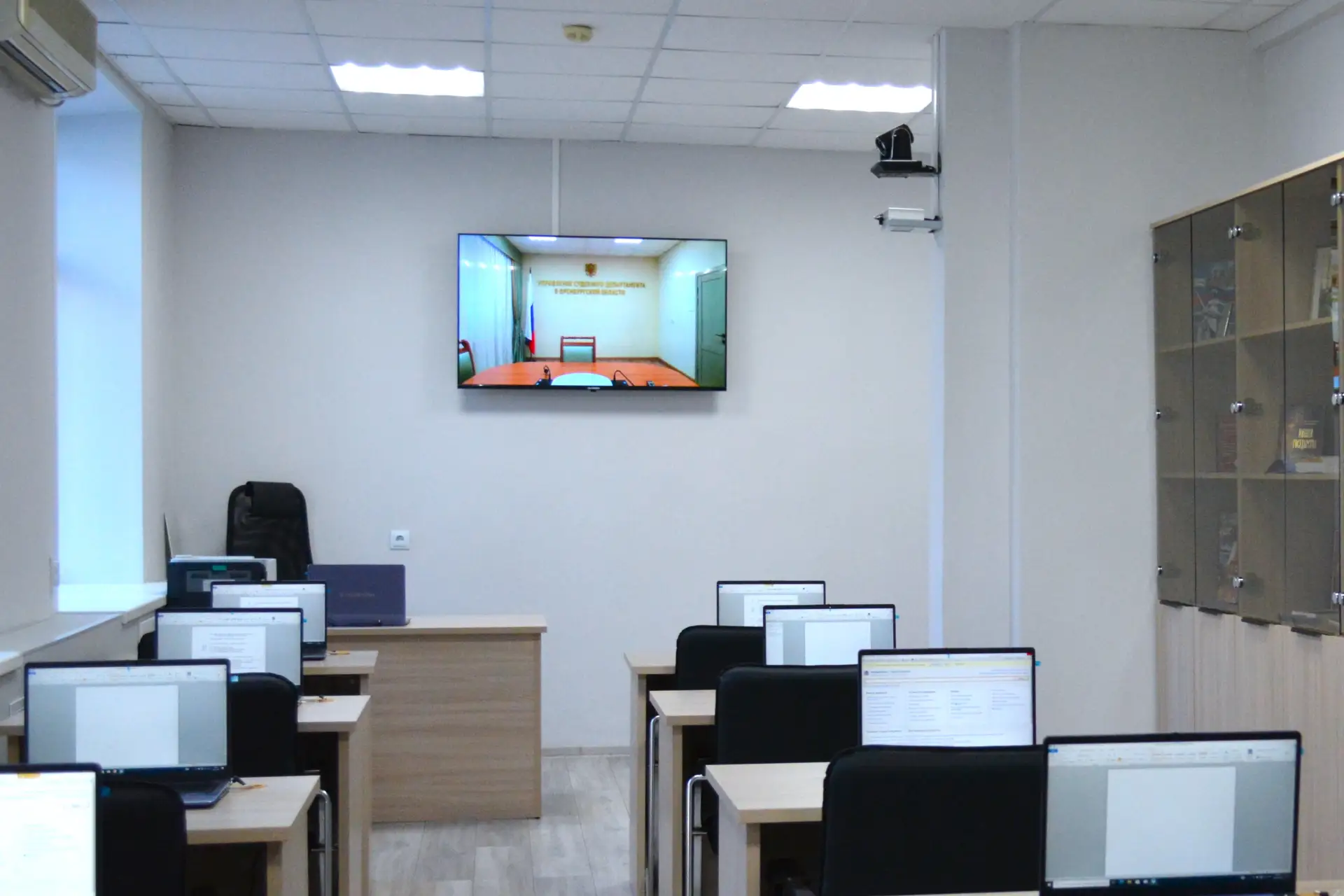 Кабинет оборудован 22 ноутбуками российского производства с актуальной базой нормативных правовых актов и системой видео-конференц-связи, которая позволяет проводить занятия для судей и работников аппаратов отдаленных судов региона. В ходе ремонта были также обновлены линии связи и электрооборудование, установлена новая мебель.