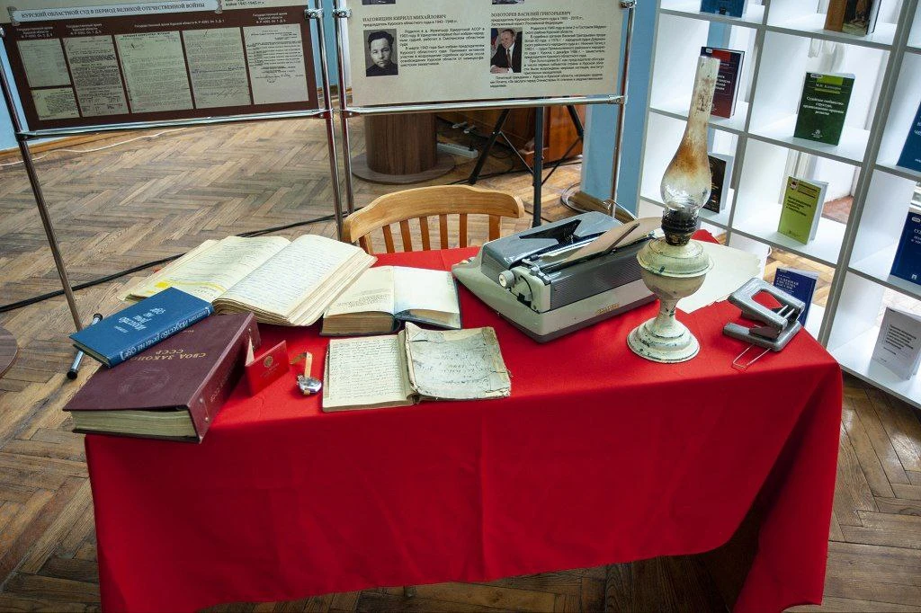 На презентации издания в Курской областной научной библиотеке воссоздали рабочее место судьи военного времени и представили алфавитные реестры уголовных дел 1944 - 1946 годов Суджанского района области.
