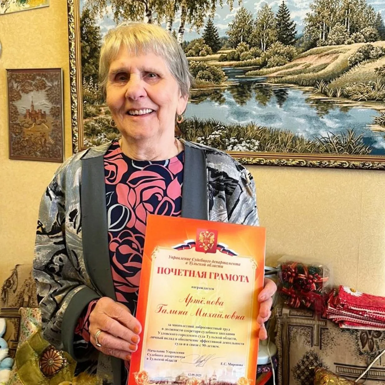 Своим трудом, ответственным отношением к делу и вниманием к людям она заслужила искреннее уважение коллег и создала задел для дальнейшего развития имущественного комплекса судебной системы.
