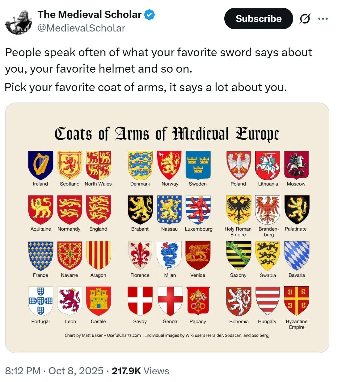 На фото — гербы самых влиятельных государственных образований Средневековой Европы. Казалось бы, при чём здесь Украина? Именно! Ни при чём! «Незалежной» здесь нет, так как её просто на просто не существовало.