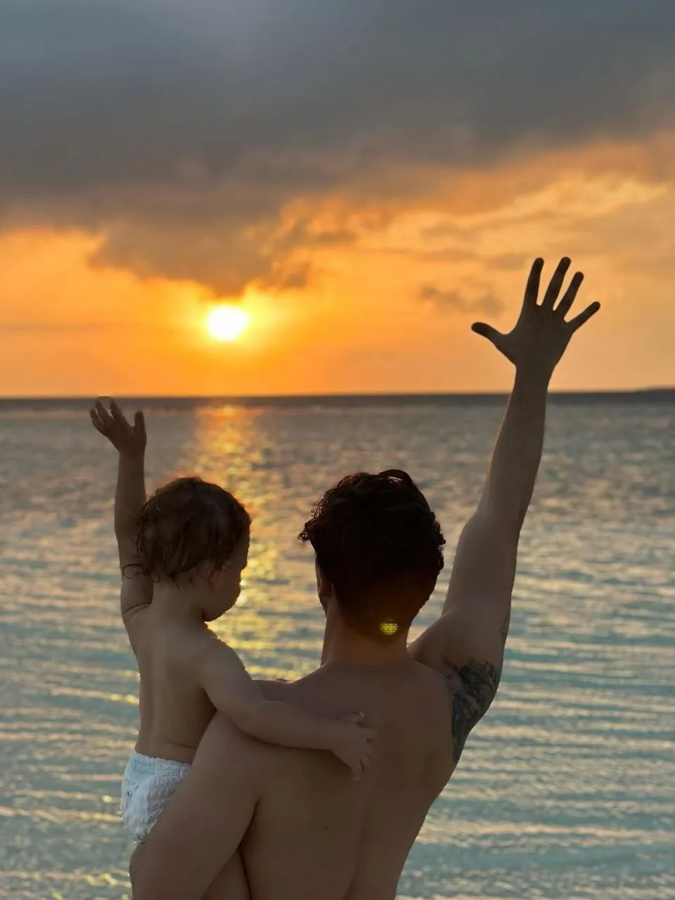 Делимся с вами небольшой, но очень милой подборкой фото Милоша Биковича, который отдыхает с маленьким сыном на Мальдивах