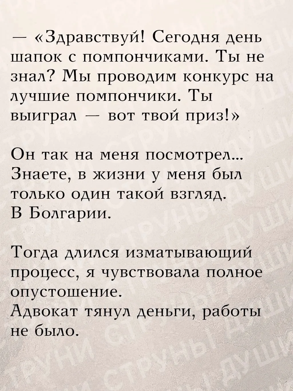 «Сегодня, наконец, поставлена точка в процессе раздела после развода. Мы достигли мирового соглашения с моим бывшим супругом на условиях, устраивающих обе стороны. Рада, что смогли пойти друг другу навстречу. Это взрослая позиция».