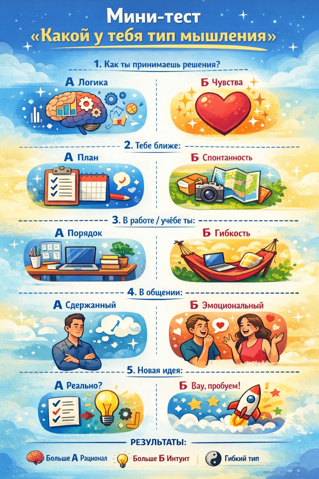 Ты гибкий тип — умеешь переключаться между логикой и чувствами. Это сильная сторона, если держать баланс.