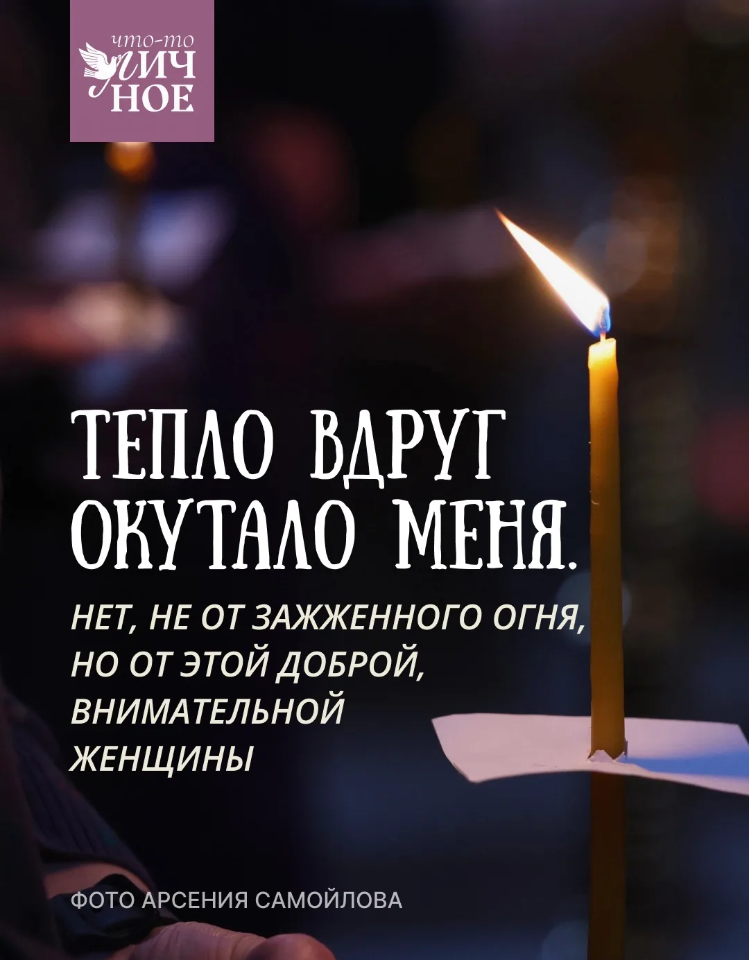 В этот момент я почувствовала, как невероятное тепло вдруг окутало меня. Нет, не от зажженного огня, но от этой доброй, внимательной женщины, которая просто так, без лишних слов, отдала мне свою вторую свечу… Казалось бы, какое ей было дело до меня, незнакомой девушки, случайно оказавшейся рядом?
