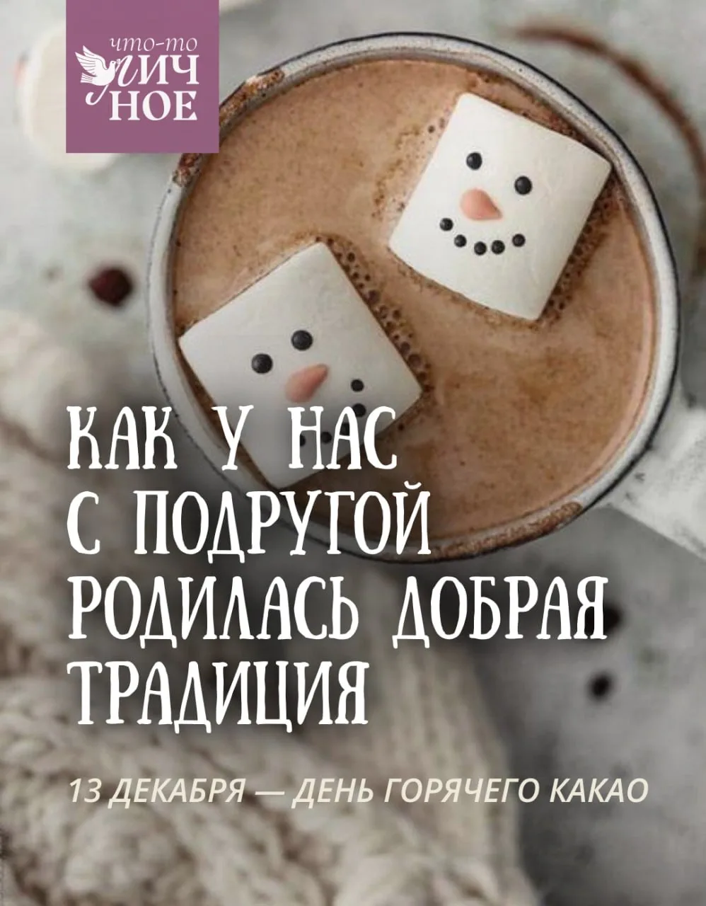 ☕ С тех пор каждое третье декабря мы встречаемся в кафе — в любом, только бы там пахло корицей и добром, заказываем какао «с зефиркой по умолчанию».