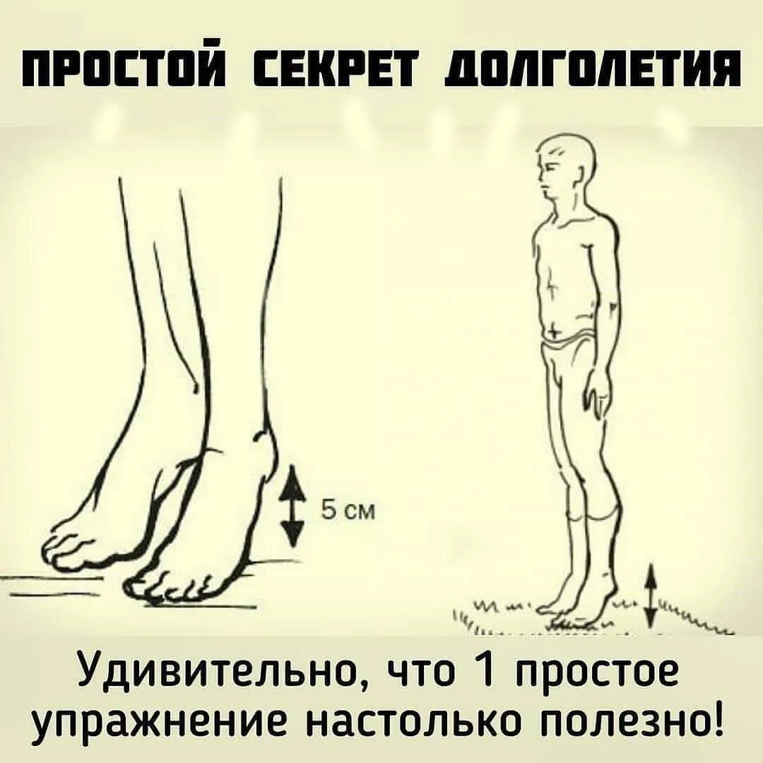🔸Делайте по 30 таких подниманий-опусканий 5 раз в день, и о болезнях и мысли не возникнет. Выполняйте упражнение не спеша: 1 сотрясение в секунду.