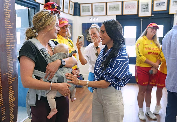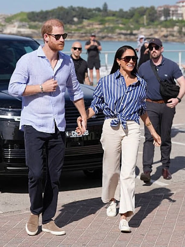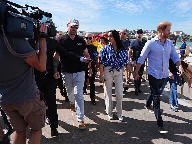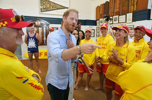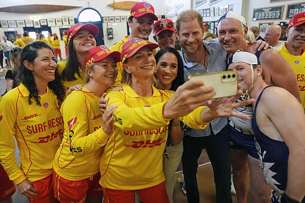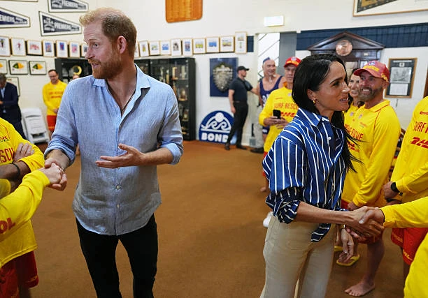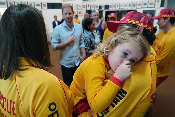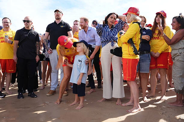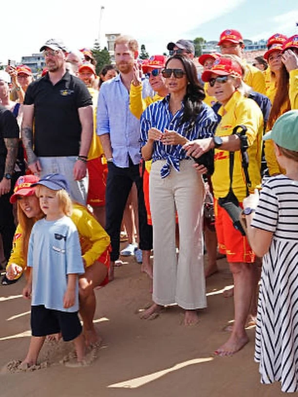 Первым делом Гарри и Меган отправились на ставший печально известным пляж Бонди, где встретились с добровольцами из спасательной службы Bondi Surf Bathers' Life Saving Club.