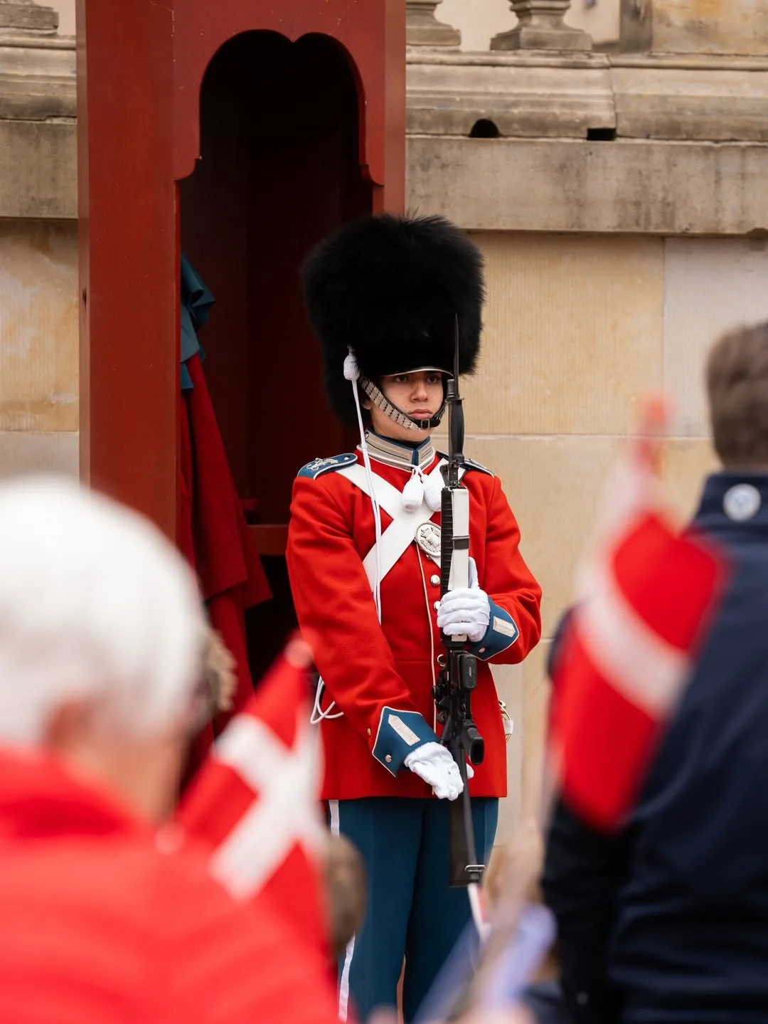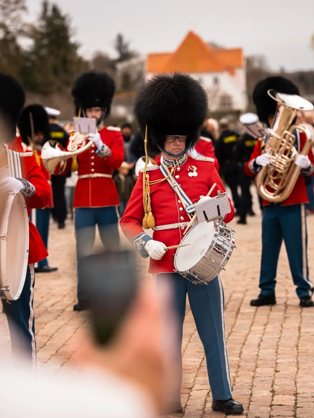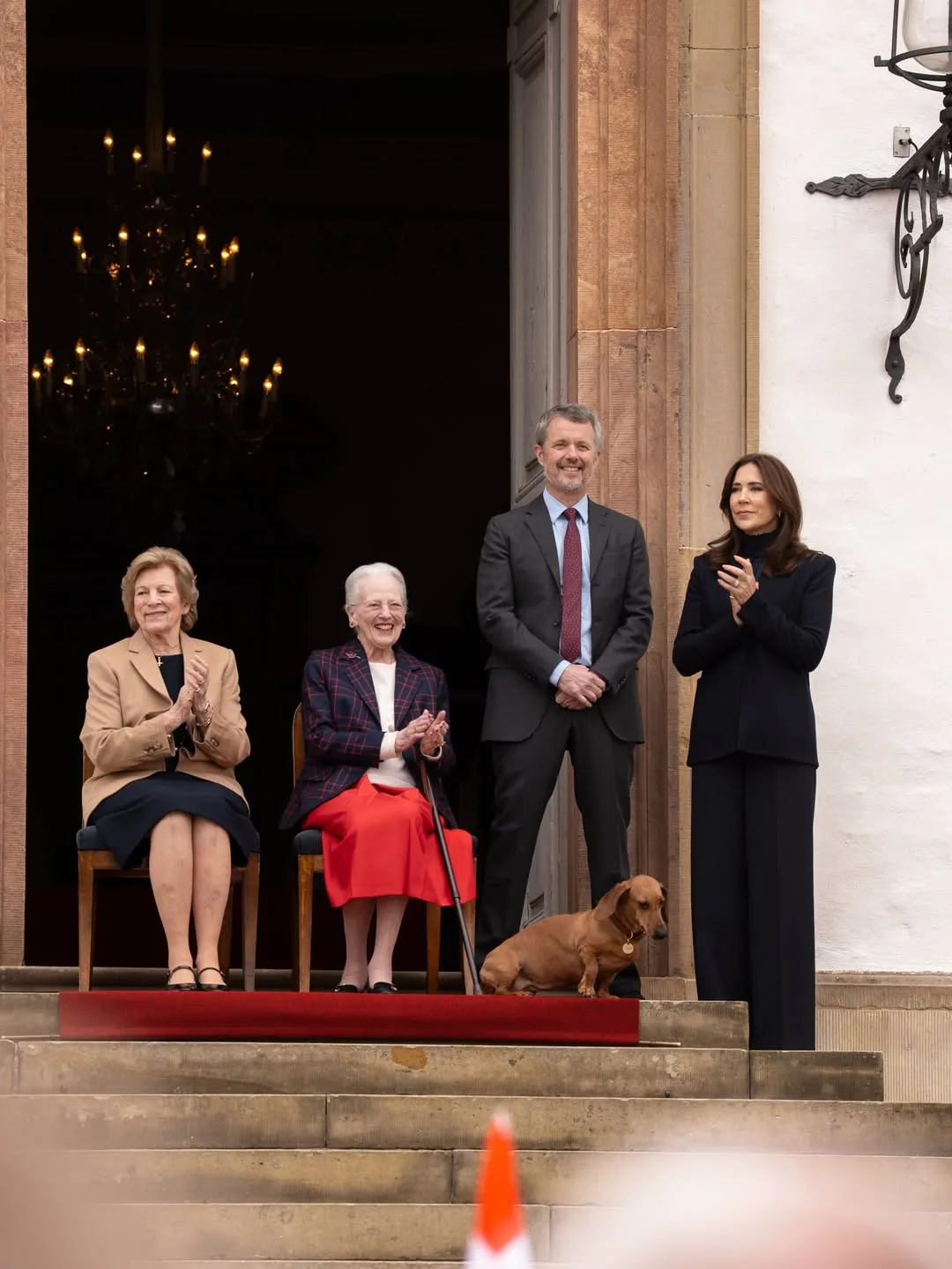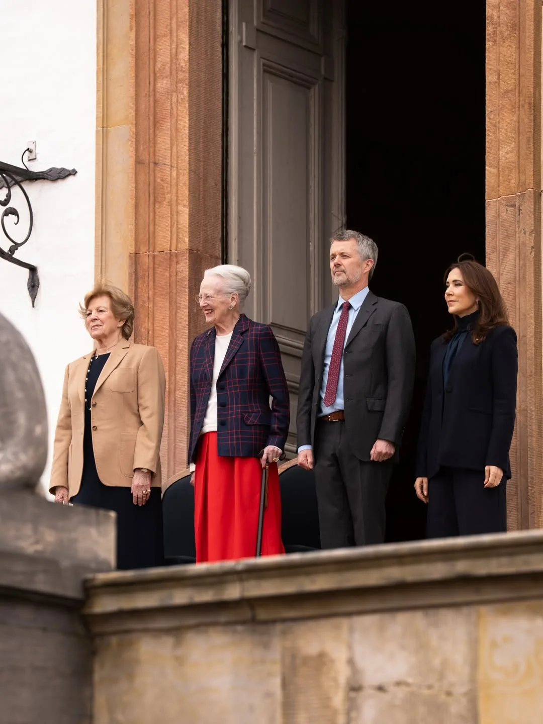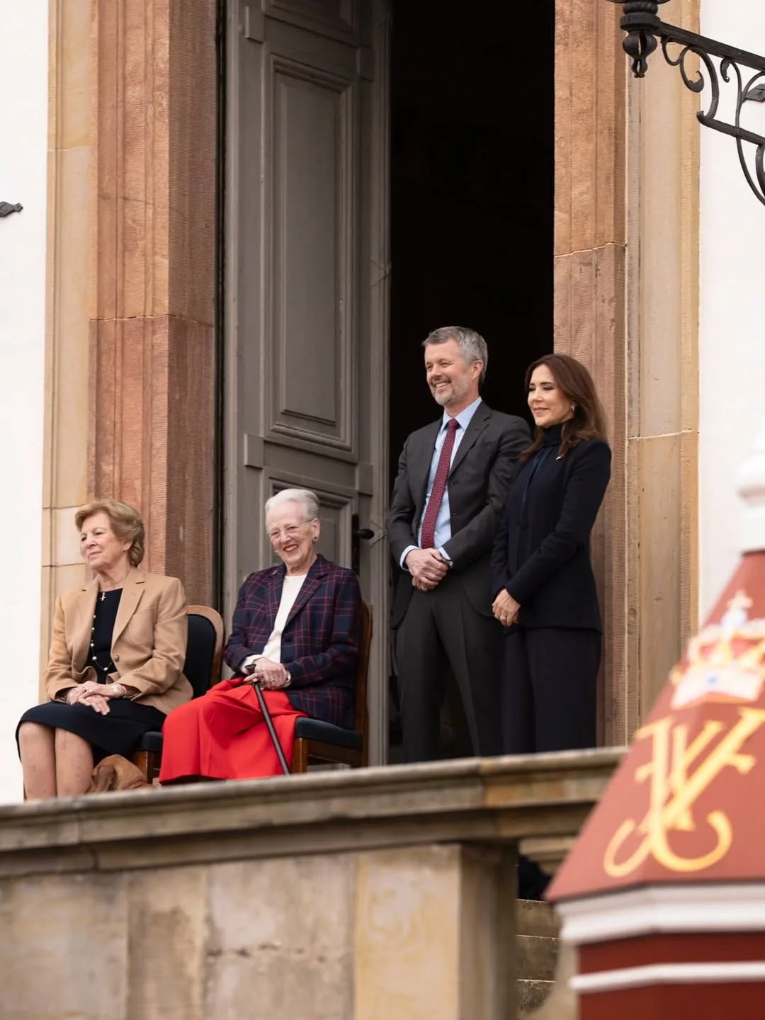 Именинница, её сестра, королева Греции Анна Мария, король Фредерик и королева Мэри, вместе с присутствующими горожанами, посетили небольшой концерт Королевской гвардии в честь дня рождения королевы Маргрете во внутреннем дворе дворца Фреденсборг 🎉
