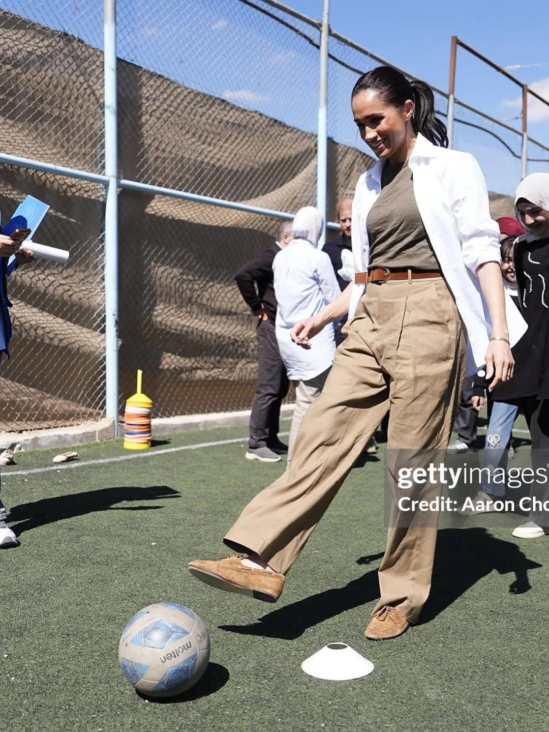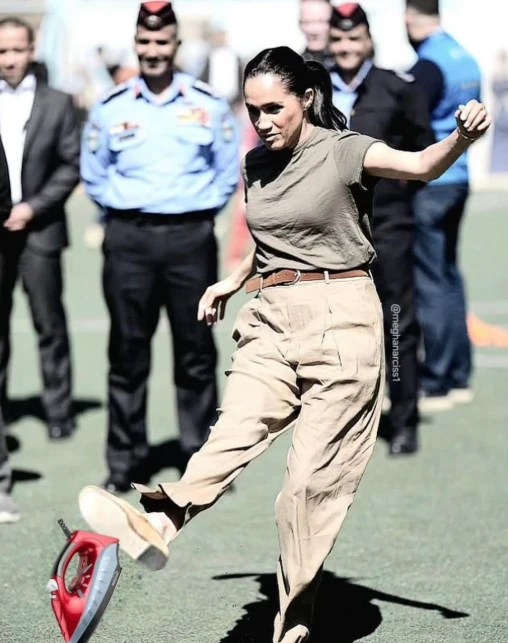 🥼 🥾 Продолжим про Меган... Ее наряд, который она выбрала для посещения молодежного центра QuestScope в лагере беженцев Заатари (Иордания), где "сыграла" в футбол. Сразу скажу - все вещи новые, Меган их ранее на публике не выгуливала: